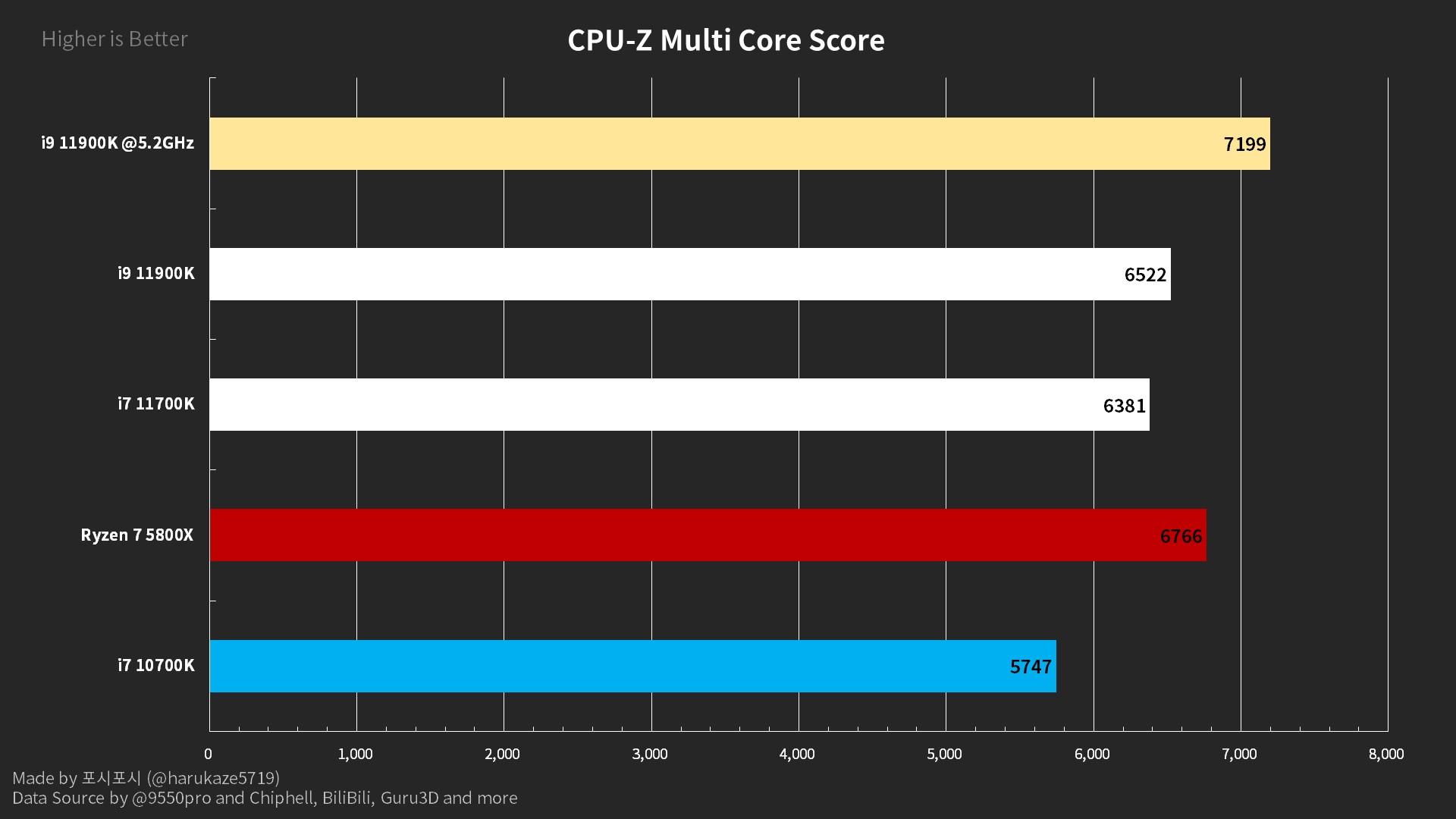 Между тем, в Сети появились результаты тестирования Intel Core i9-11900K (8 ядер/16 потоков), разогнанного до 5,2 ГГц по всем ядрам. В таком режиме глава семейства Rocket Lake-S опередил во встроенном бенчмарке CPU-Z все актуальные 8-ядерники, включая AMD Ryzen 7 5800X. С другой стороны, как новинка покажет себя в реальных задачах, например видеоиграх, ещё предстоит выяснить после официального релиза.