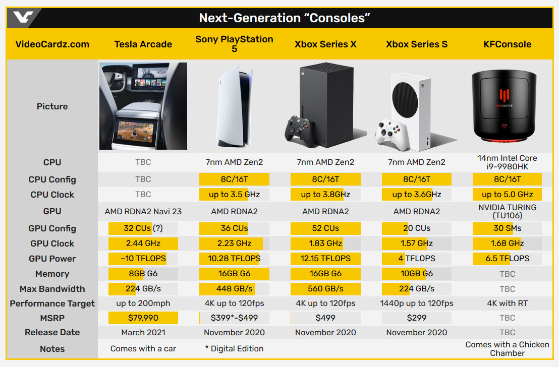 По данным Tesla Motors, новая система Tesla Arcade будет предлагать до 10 терафлопс мощности FP32, что сопоставимо с Sony PlayStation 5. Для достижения такой производительности 32 вычислительных блока графического процессора Navi 23 (2048 потоковых процессоров) должны будут работать на частоте не менее 2,44 ГГц.