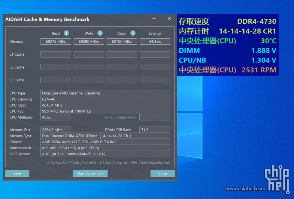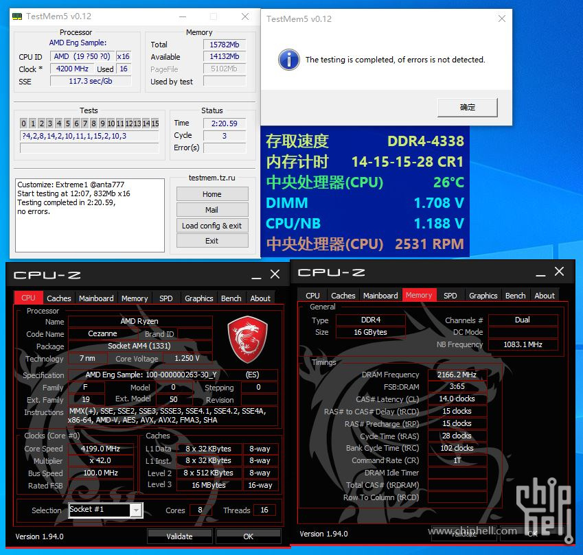 На китайском форуме Chiphell один из участников опубликовал информацию об инженерном образце настольного процессора AMD Ryzen 7 5700G. Если верить инсайдеру, гибридный чип Cezanne способен работать с высокочастотной памятью, включая режимы DDR4-5333.