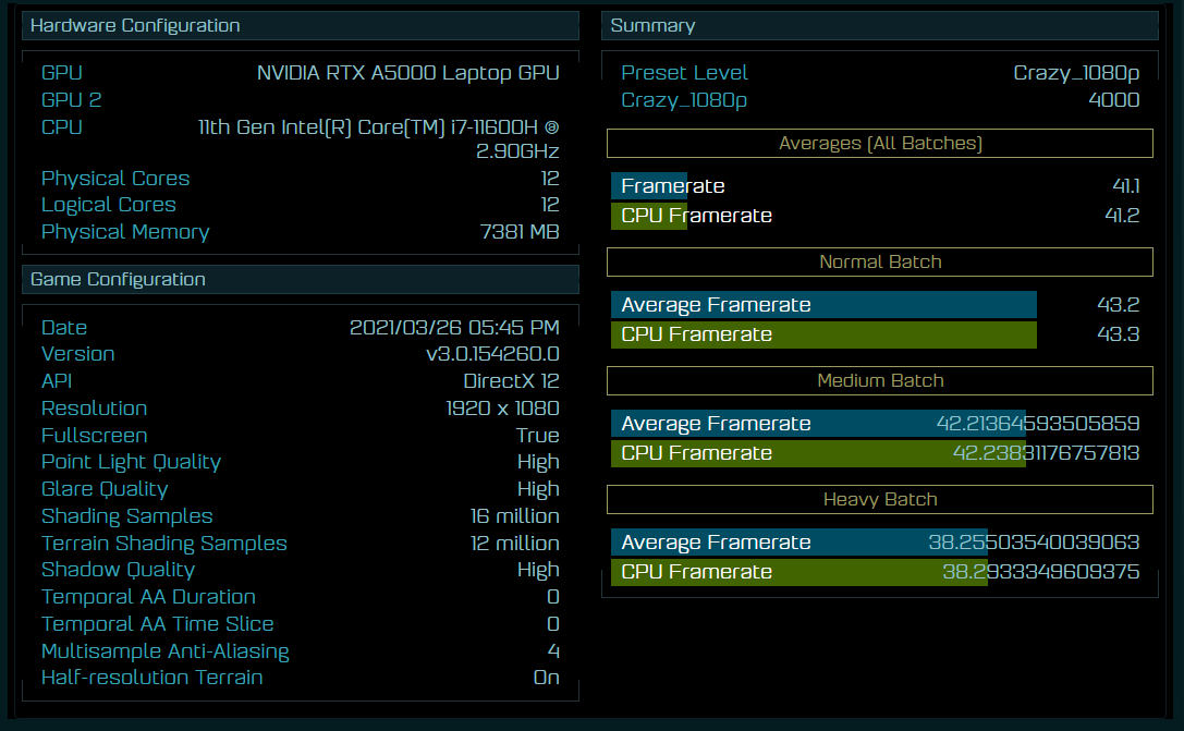 На днях стало известно, что Nvidia трудится над профессиональными ускорителями RTX A5000 и RTX A4000 на базе архитектуры Ampere. Теперь мобильная рабочая станция с процессором Intel Core i7-11600H и видеокартой RTX A5000 была протестирована в стратегии Ashes of the Singularity.