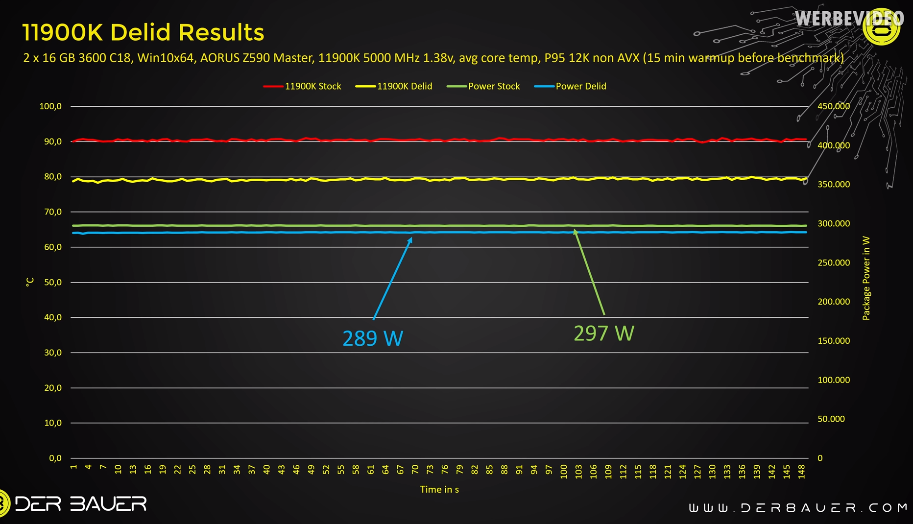 В конце эксперимента Der8auer решил выяснить, насколько уменьшиться рабочая температура Core i9-11900K после замены штатного припоя на жидкий металл. К его удивлению, разница составила внушительные 12°C. Такой результат можно ожидать при «скальпировании» процессоров с пластичным термоинтерфейсом вроде Core i7-8700K. В ближайшее время Роман проведёт дополнительные эксперименты с охлаждением Core i9-11900K, предоставив результаты широкой публике.