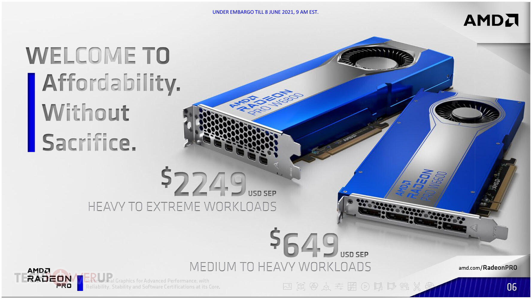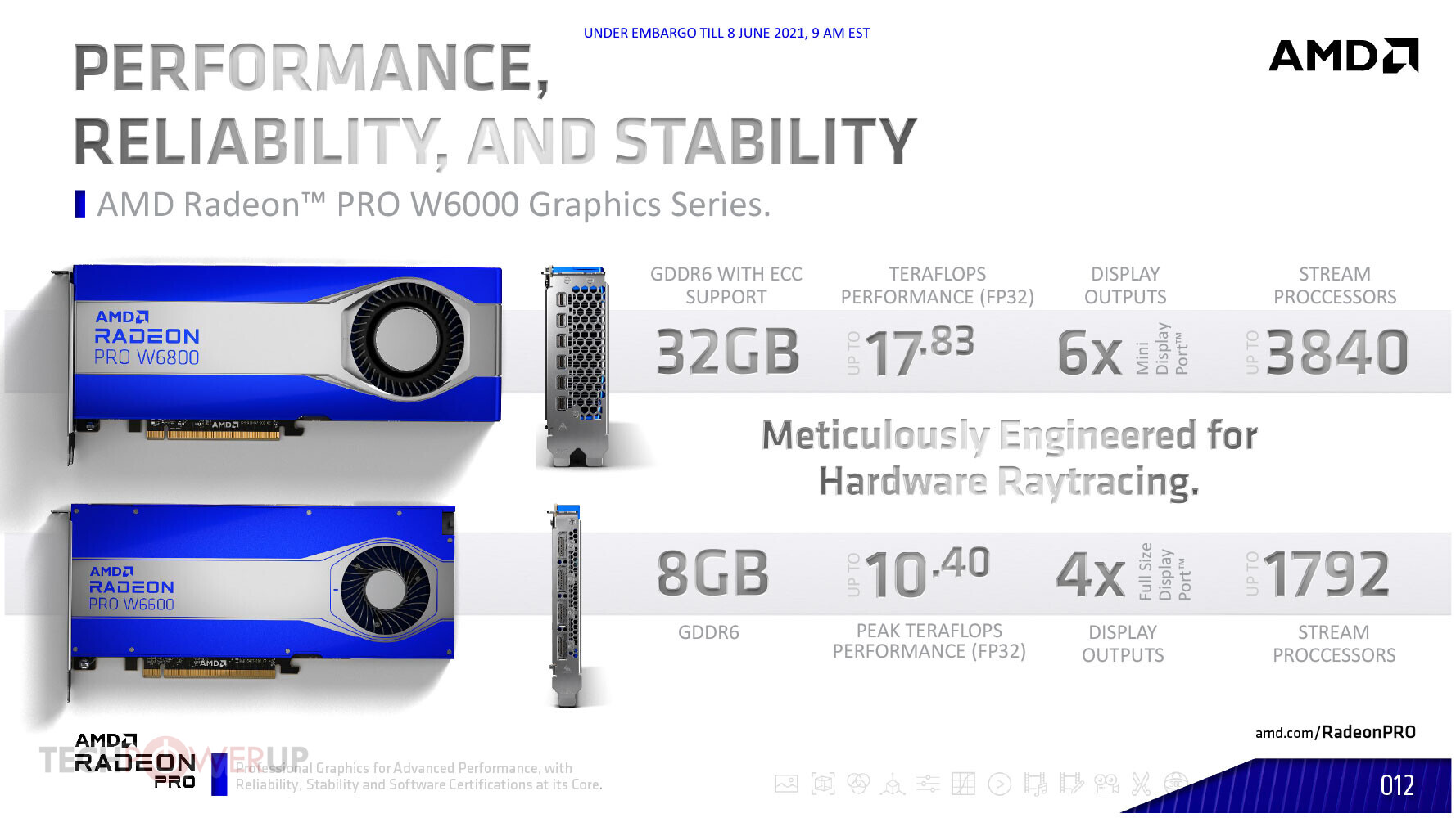Серия профессиональных 3D-ускорителей Radeon Pro сегодня официально пополнилась тремя устройствами на архитектуре AMD RDNA 2-го поколения: десктопными Radeon Pro W6600 и W6800, а также мобильной Radeon Pro W6600M. К слову, о подготовке старшего решения стало известно ещё два месяца назад.