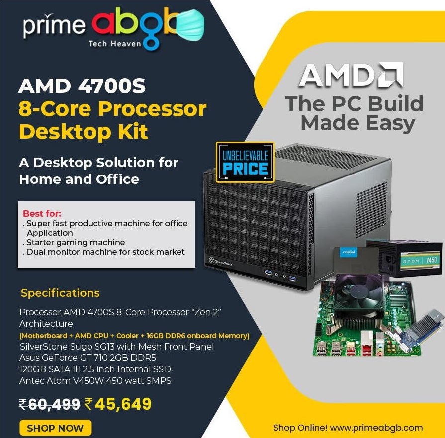 В настоящее время многие партнёры AMD заняты сборкой собственных систем на базе платформы 4700S Desktop Kit. Одним из первых такое устройство представил индийский ритейлер PrimeABGB. Его вариант компьютера выполнен в небольшом корпусе SilverStone Sugo SG13 и доступен для приобретения по цене около 600 долларов США.