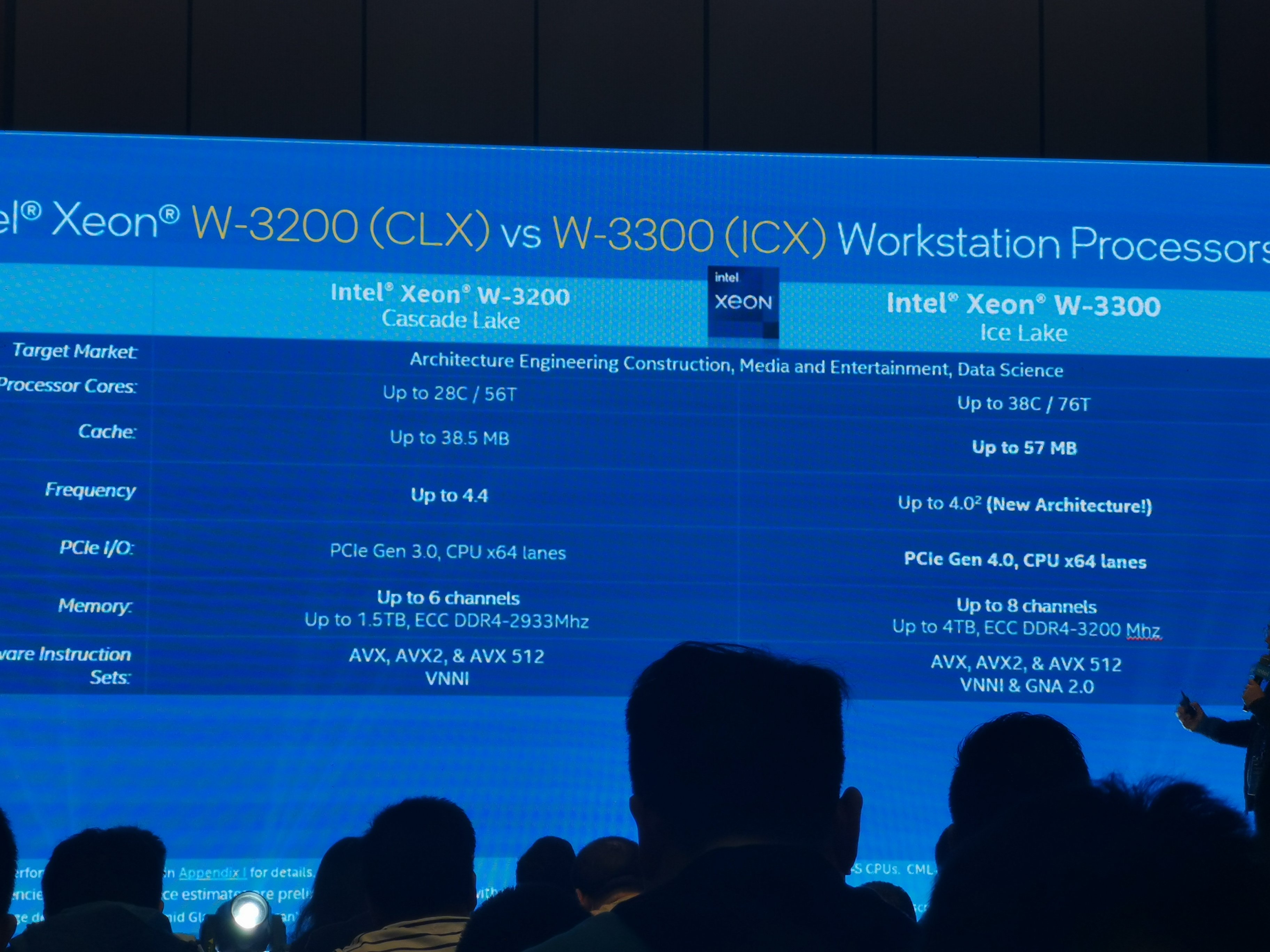 С точки зрения характеристик процессоры Intel Xeon W-3300 максимально близки к серверным чипам Xeon Scalable 3-го поколения. Для них характерно конструктивное исполнение LGA4189, наличие до 38 ядер Sunny Cove, 8-канального контроллера памяти DDR4-3200 и до 64 линий интерфейса PCI Express 4.0. Использовать новые CPU можно будет в материнских платах с набором логии Intel C621A.