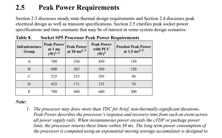Кроме того, EPYC Genoa оснащаются 12-канальным контроллером памяти DDR5, имеют иметь 128 линий PCIe Gen 5.0, а тепловой пакет топового чипа составит 320 Вт в номинальном режиме и 400 Вт в максимальном. Наконец, пиковая потребляемая мощность таких моделей может достигать 700 Вт в течение 1 мс.