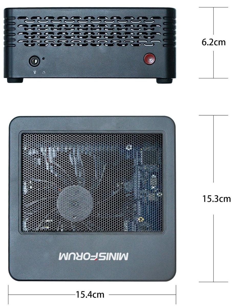 Minisforum EliteMini X500 выполнен в корпусе с габаритами 154(Д) x 153(Ш) x 62(В) мм. Он поддерживает установку двух модулей оперативной памяти SO-DIMM DDR4-3200 суммарным объёмом до 64 Гбайт, NVMe-накопителя M.2 и 2,5-дюймового устройства с интерфейсом SATA 6 Гбит/с. Кроме того, предусмотрен дополнительный слот M.2 под SATA SSD типоразмера 2242.