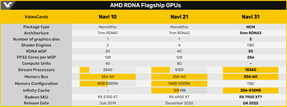Графический процессор AMD Navi 31 должен стать первым потребительским GPU с многочиповой компоновкой. Если верить неофициальным источникам, в нём компания объединит два отдельных кристалла с 7680 вычислительными ядрами в каждом. К слову, актуальный Navi 21 в составе Radeon RX 6900 XT оперирует 5120 ядрами.