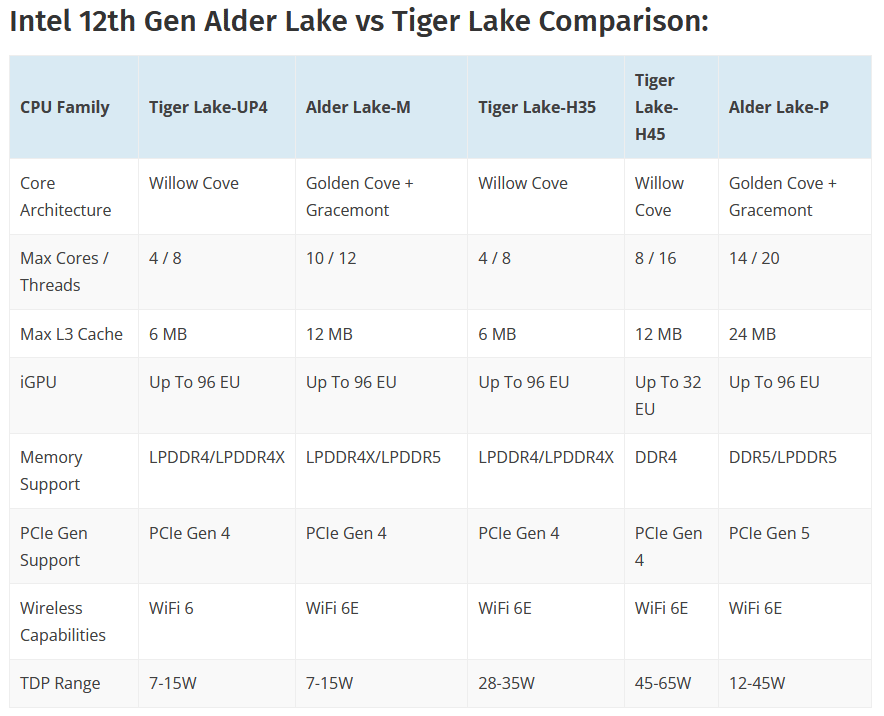 За последние недели в Сети были замечены сразу несколько процессоров для мобильной техники из серии Alder Lake-P. Напомним, к ним относятся чипы с тепловым пакетом 45 Вт и 14 ядрами: шестью Golden Cove и восемью Gracemont. Они придут на смену H-серии (Tiger Lake-H, Comet Lake-H) для использования в игровых ноутбуках и мобильных рабочих станциях.