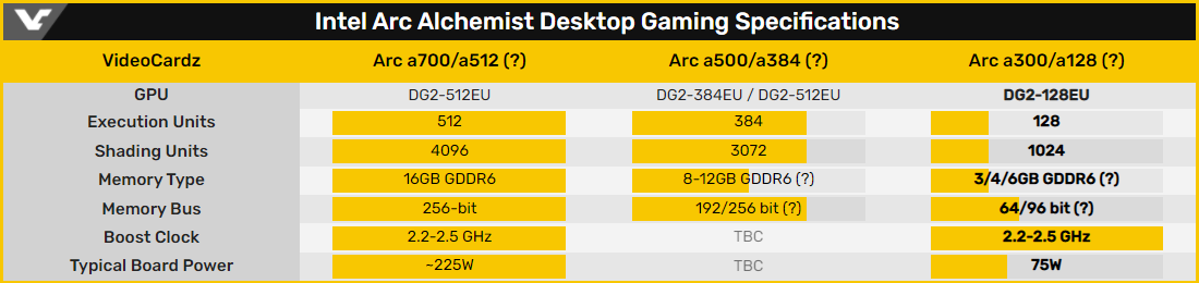 Рабочие частоты GPU находятся в диапазоне от 2,2 до 2,5 ГГц. Штатный уровень TDP составит около 75 Вт, что позволит AIB-партнёрам Intel наладить выпуск карт без дополнительного разъёма питания. Ближайшими конкурентами устройств на базе Intel DG2-128EU станут видеоадаптеры на основе ядер AMD Navi 24 и Nvidia GA107.
