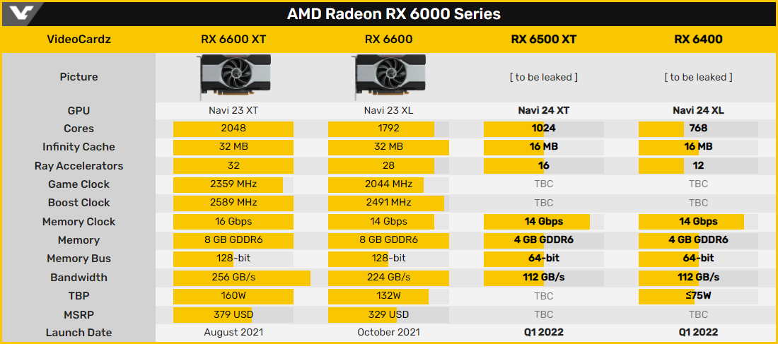 Первой в продажу поступит видеокарта AMD Radeon RX 6500 XT. Релиз Radeon RX 6400, вероятно, состоится ближе к концу первого квартала.
