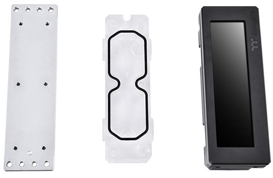 Сам ЖК-дисплей имеет разрешение 128 x 480 точек и подключается к системе через колодку USB-порта на материнской плате. Владельцы могут вывести на него различную информацию о системе, к примеру, рабочие частоты и температуры, или же собственное изображение/анимацию. Для управления экраном используется приложение TT RGB Plus.