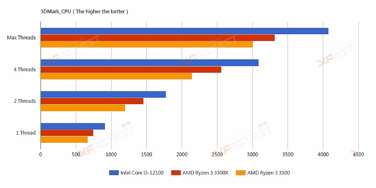 Основными соперниками выступили четырехъядерники Zen 2 из стана AMD, а именно Ryzen 3 3100 и Ryzen 3 3300X. Они функционировали на материнской плате ASRock X470 Taichi с той же памятью и видеокартой. По мнению журналистов, все три чипа попадают в категорию 1000 гонконгских долларов или ~$130.