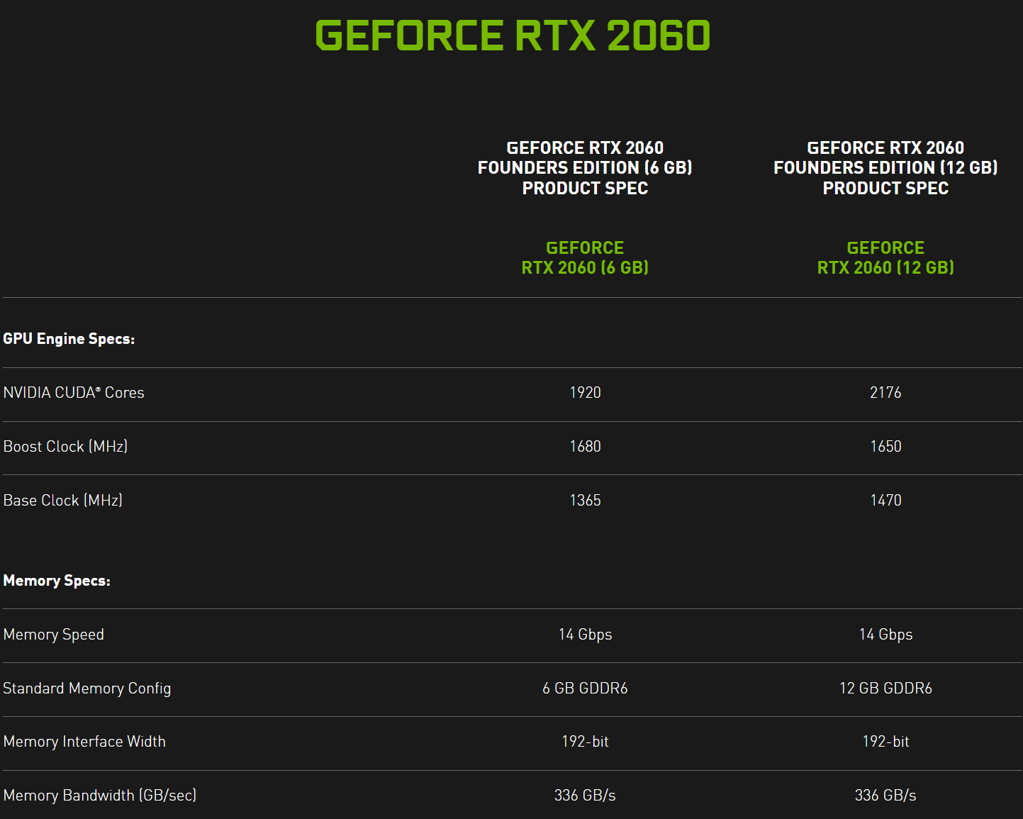 Вслед за релизом драйвера GeForce 497.09 WHQL, который обеспечил поддержку GeForce RTX 2060 12GB, спецификации новой видеокарты были опубликованы на сайте Nvidia. Как и ожидалось, устройство сможет похвастаться не только 12-гигабайтным буфером GDDR6, но и большим числом CUDA-ядер, чем у оригинальной модели.