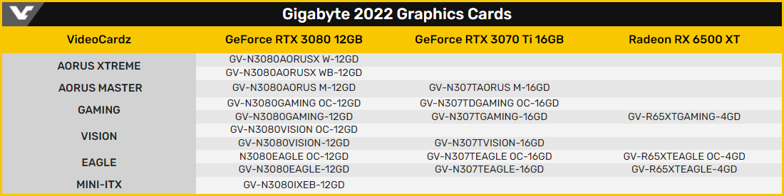 Что касается модельного ряда Gigabyte, то в нём будут представлены видеокарты линеек Mini-ITX, Eagle, Vision, Gaming, Aorus Master и Xtreme.