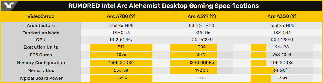 Старший 3D-ускоритель получит GPU на 512 исполнительных блоков (Execution Units, EU), оснащается 16-гигабайтным видеобуфером GDDR6 и должен составить конкуренцию GeForce RTX 3070 Ti. Вторая новинка оперирует 384 EU и получила 12 Гбайт памяти GDDR6. Её ближайшим соперником должна стать GeForce RTX 3060 Ti.
