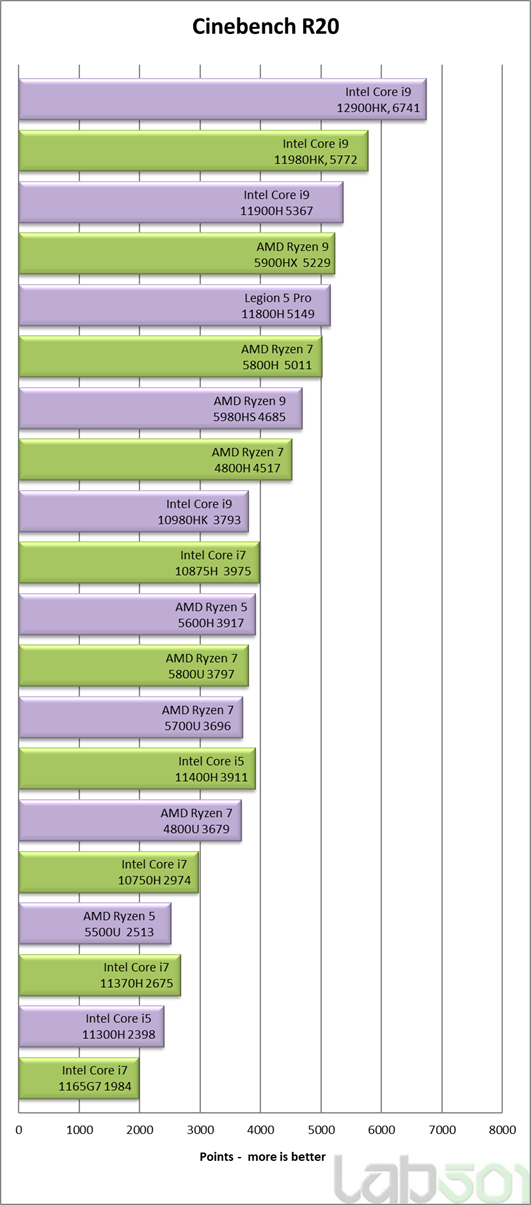 Core i9-12900HK возглавляет таблицы лидеров не только среди мобильных, но и многих настольных процессоров. Что интересно, Core i9-12900HK умудряется на несколько десятков баллов обойти 16-ядерный HEDT-чип Threadripper 1950X с тепловым пакетом 180 Вт в Cinebench R20.