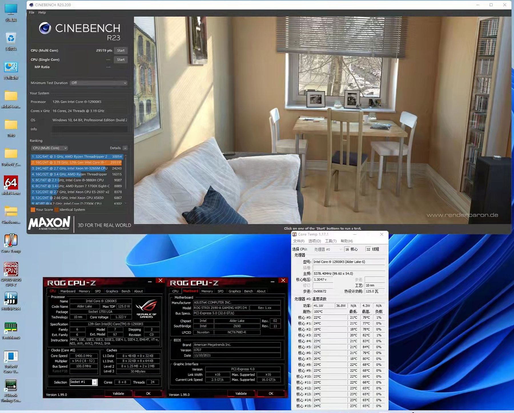 Вдобавок был опубликован скриншот с результатами тестирования Core i9-12900KS в Cinebench R23. В настоящий момент трудно подтвердить его подлинность, так что советуем относиться к предоставленной информации со здравым скептицизмом. В ходе тестирования процессор работал на максимальной частоте 5,4 ГГц, а его результат составил 29 519 баллов. Это примерно на 8% больше, чем в штатном режиме набирает Core i9-12900K.