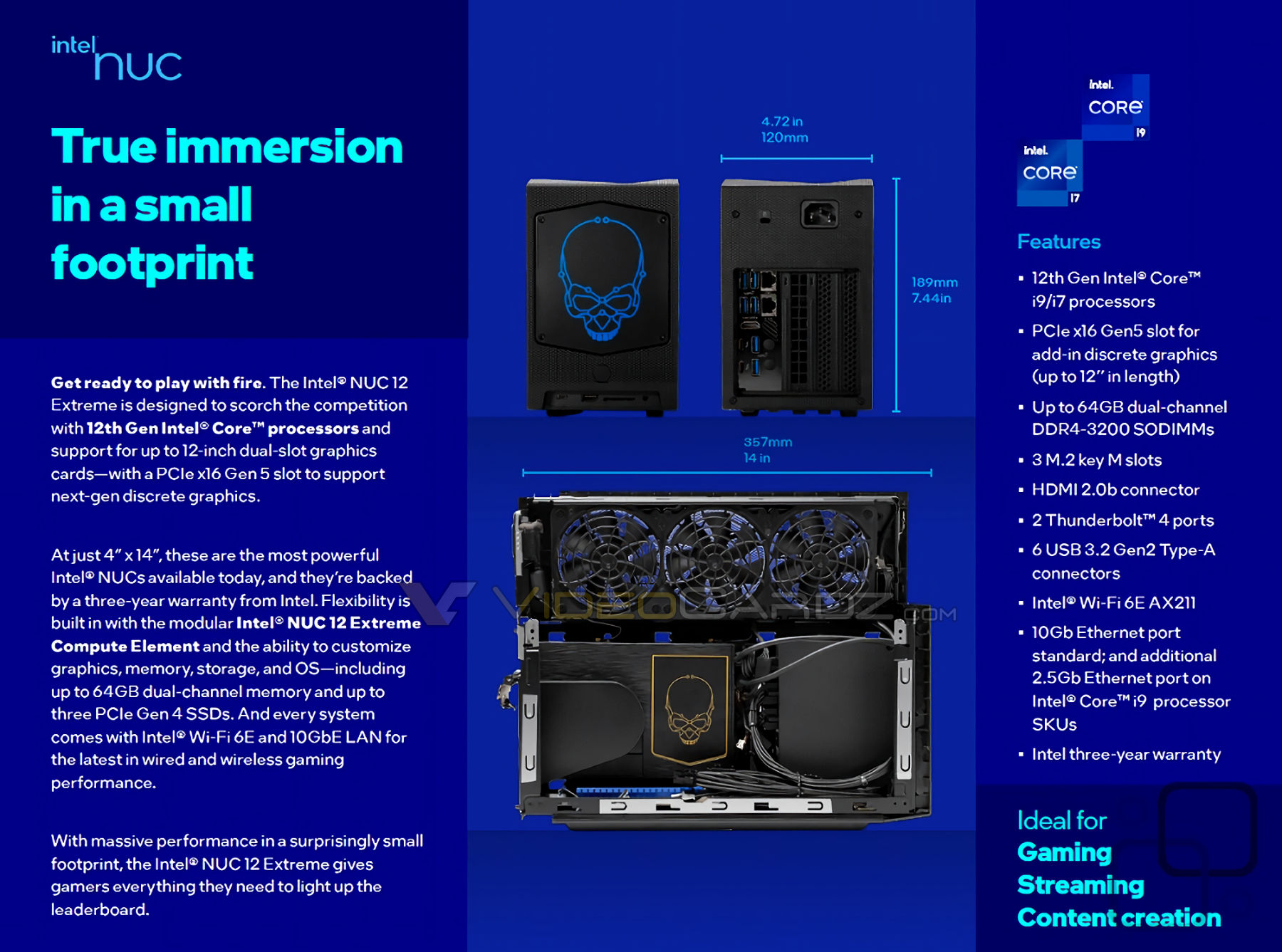 В обозримом будущем Intel выведет на рынок игровые десктопы NUC 12 Extreme (Dragon Canyon) на основе платформы Intel LGA1700. Спецификации готовящихся к выпуску устройств сегодня опубликовал веб-ресурс VideoCardz.