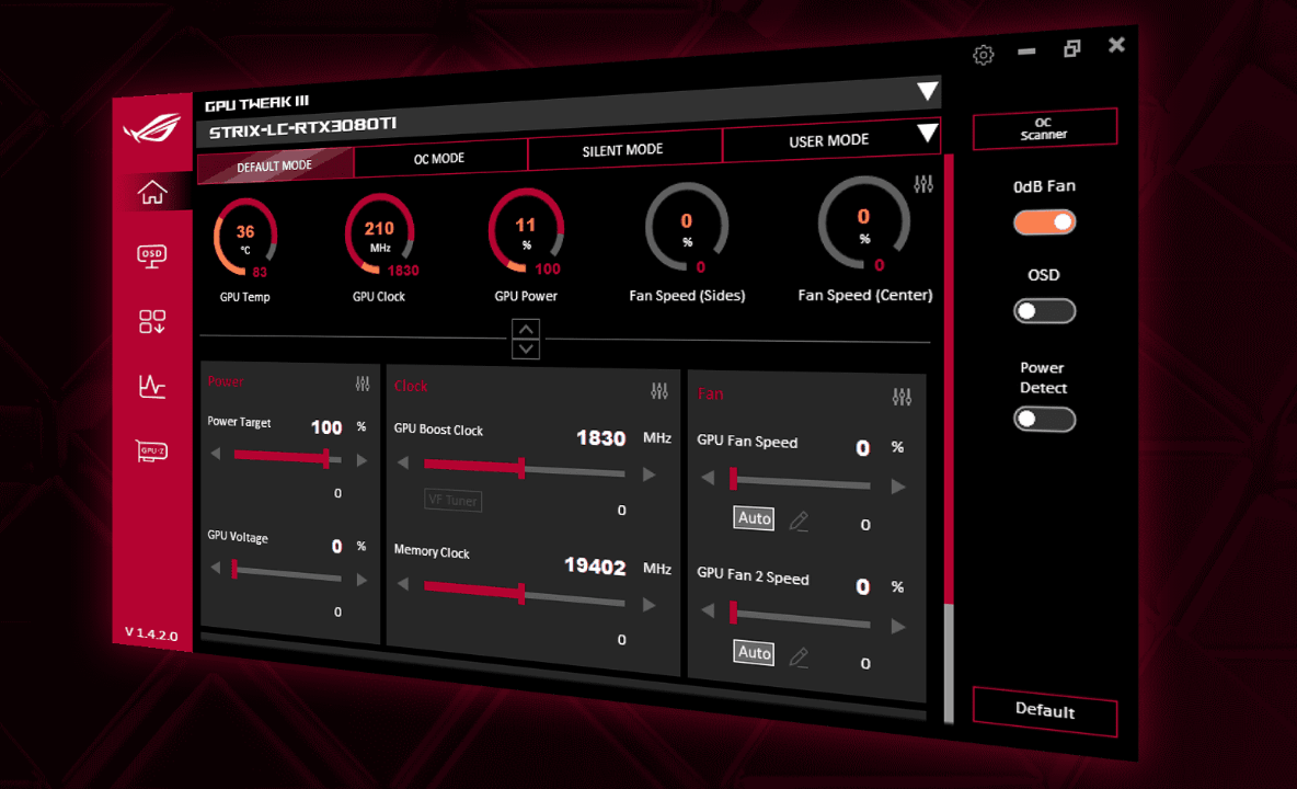 В новой версии ASUS GPU Tweak III обновлен пользовательский интерфейс. Добавлена поддержка всех актуальных на данный момент видеокарт. Появились новые параметры мониторинга производительности.