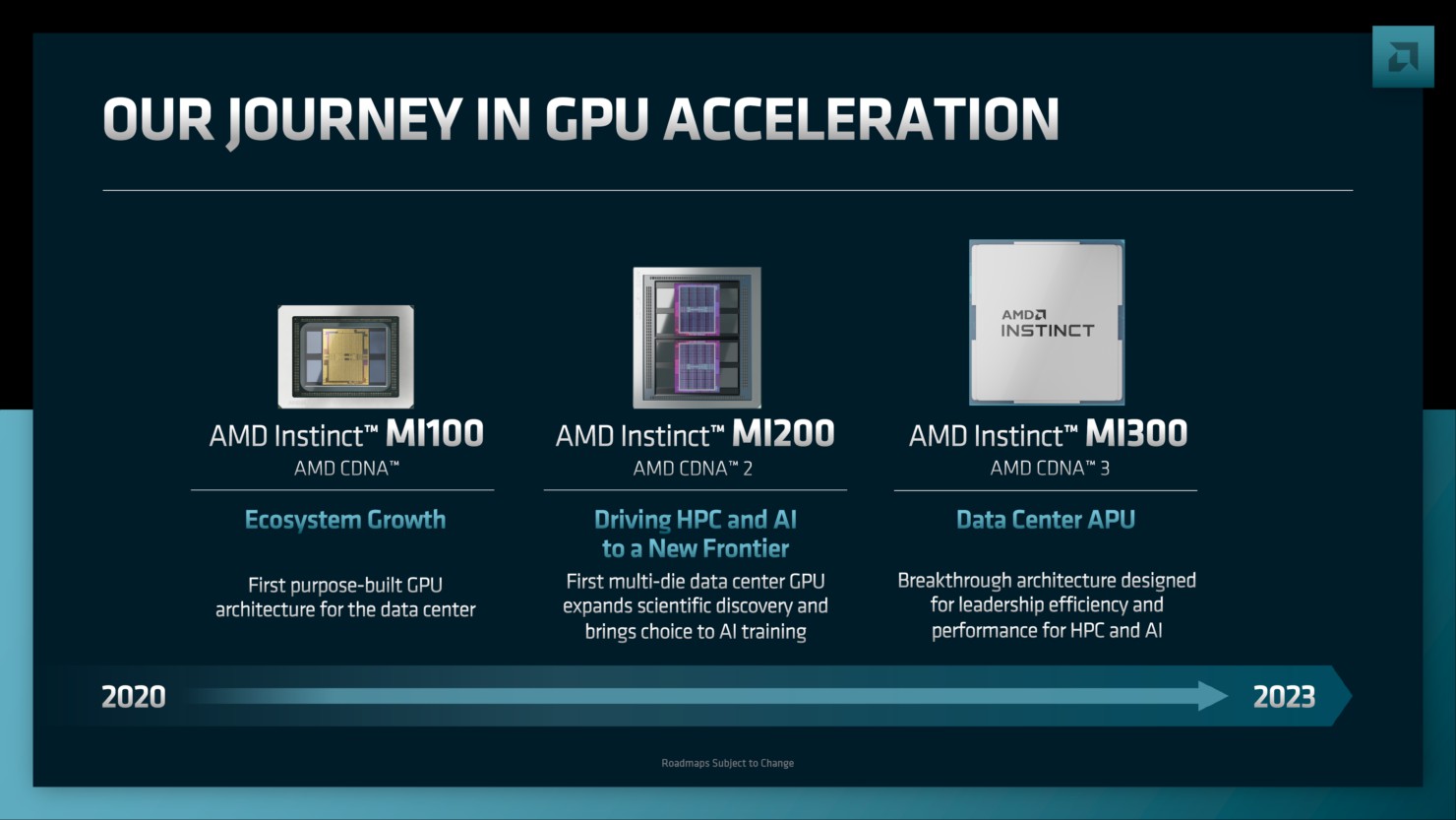 Процессоры для ускорителей вычислений AMD перевела на многочиповую компоновку в прошлом году. Следующим этапом станет выпуск гибридных процессоров для дата-центров. В ускорителях Instinct MI300 компания планирует объединить кристаллы CPU на архитектуре Zen 4, GPU-чиплеты CDNA 3-го поколения, а также буфер HBM.