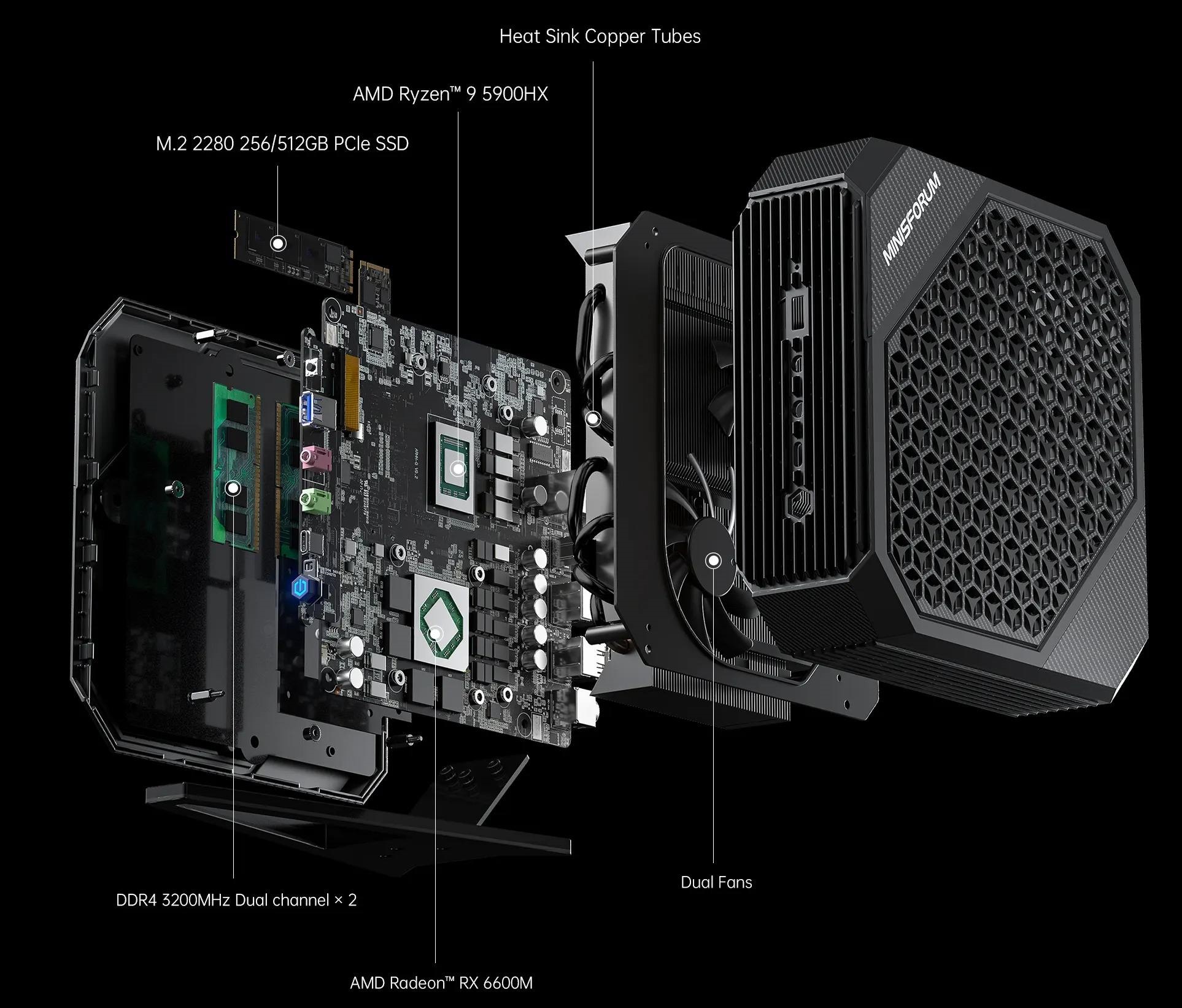 Гонконгская фирма Minisforum начала принимать заказы на неттоп Elitemini HX90G. Вендор с гордостью называет его первым в мире мини-компьютером с дискретной графикой AMD. В роли «сердца» устройства выступил гибридный процессор Ryzen 9 5900HX (8 ядер/16 потоков, 3,3/4,6 ГГц) на микроархитектуре Zen 3.