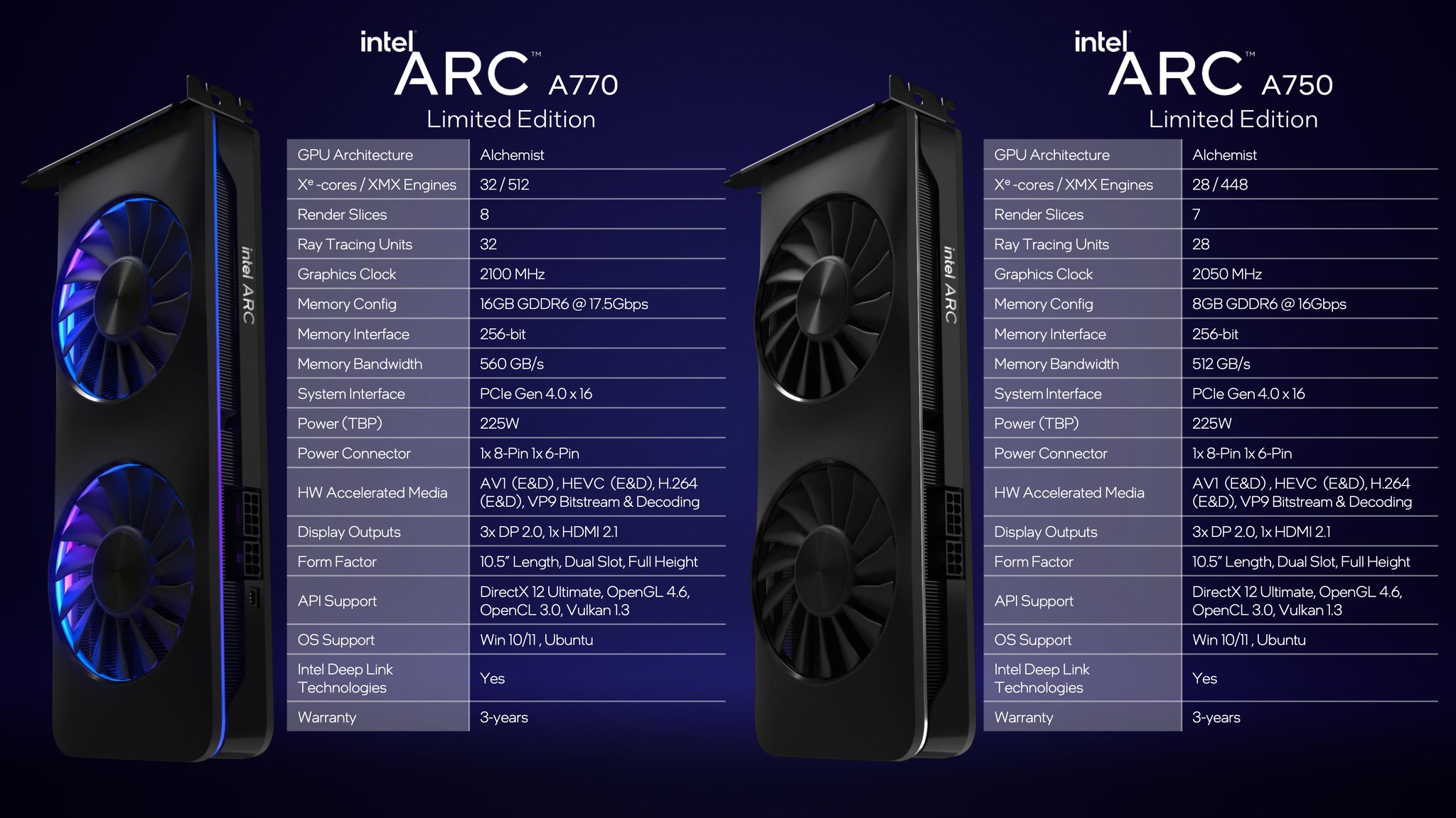 В ближайшем будущем на рынок поступит не только видеокарта Intel Arc A770, но и Arc A750. Младшее решение выйдет с рекомендованной ценой 289 долларов, тогда как старшая модель обойдётся минимум в $329 за 8-гигабайтную версию или $349 в случае 16-гигабайтного варианта Limited Edition. Все новинки, как заверила Intel, станут доступны для покупки 12 октября.