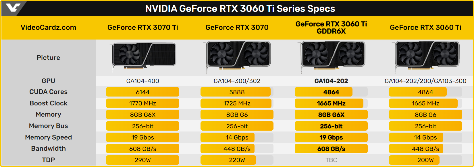 Веб-ресурс VideoCardz поделился свежей информацией о модификации GeForce RTX 3060 Ti с памятью GDDR6X. Эта видеокарта поступит на рынок в течение ближайших нескольких недель и унаследует конфигурацию графического процессора от выпущенной ранее модели. Однако увеличенная пропускная способность видеобуфера всё же обеспечит новинке прирост быстродействия.