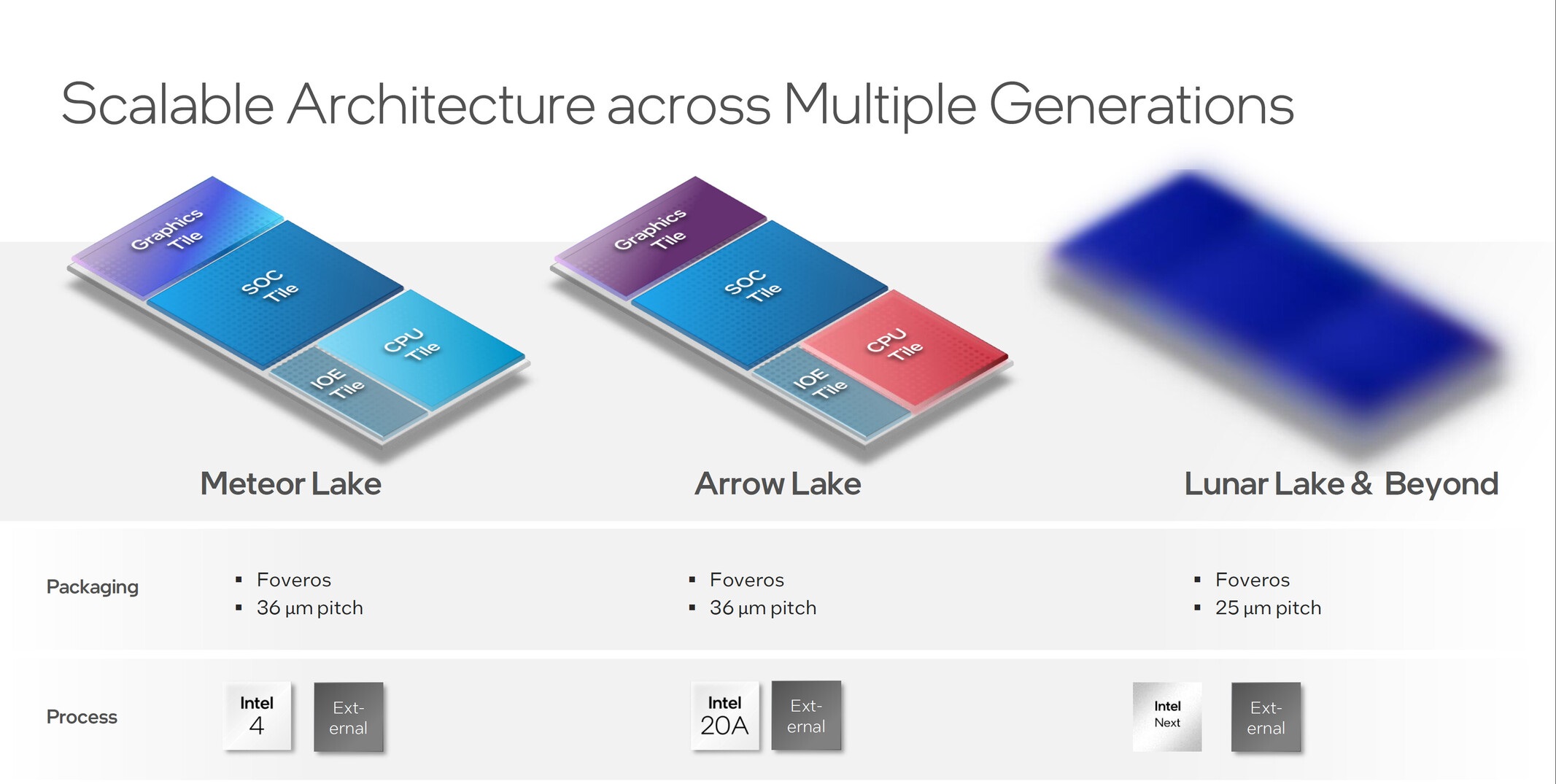 Начиная с процессоров Core 14-го поколения Intel перейдёт на многочиповую компоновку. В CPU Meteor Lake-S будут использоваться отдельные кристаллы с x86-ядрами, графическим блоком и системной логикой. Максимальное число ядер составит 22 штуки: 6 высокопроизводительных Redwood Cove и 16 энергоэффективных ядер Crestmont. Это меньше, чем у актуальных CPU Core 13-го поколения (Raptor Lake-S), а прирост быстродействия, судя по всему, будет получен за счёт архитектурных улучшений.