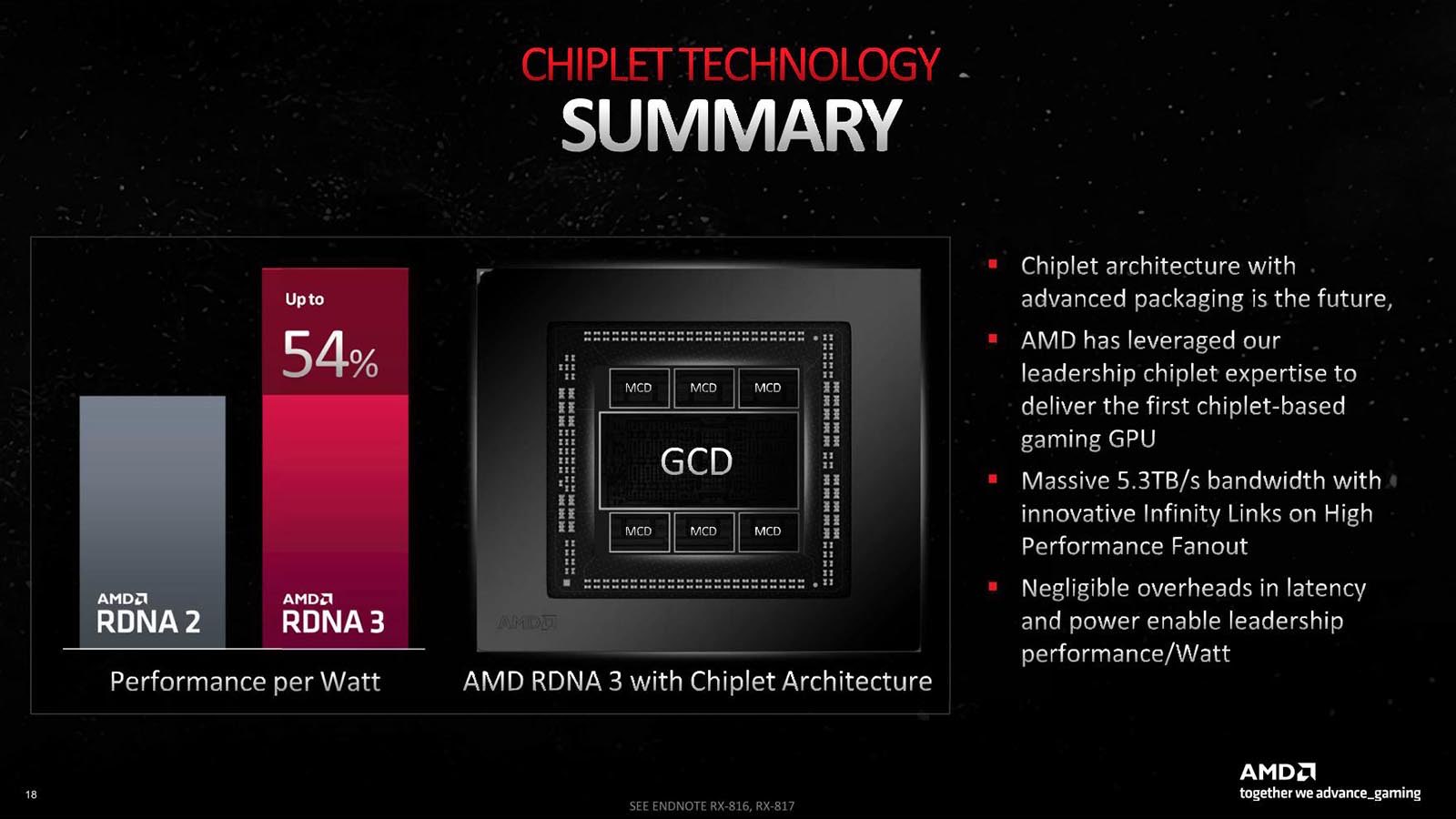 Для обмена информацией между чиплетами MCD и центральным кристаллом GCD в графическом процессоре AMD Navi 31 применены соединения Infinity Links. Они работают на скорости 9,2 Гбит/с и обеспечивают почти в десять раз большую плотность полосы пропускания по сравнению с технологией IFOP (Infinity Fabric On-Package) в чипах Ryzen и EPYC. Совокупная пропускная способность шины между микросхемами GCD и MCD достигает 5,3 Тбайт/с.
