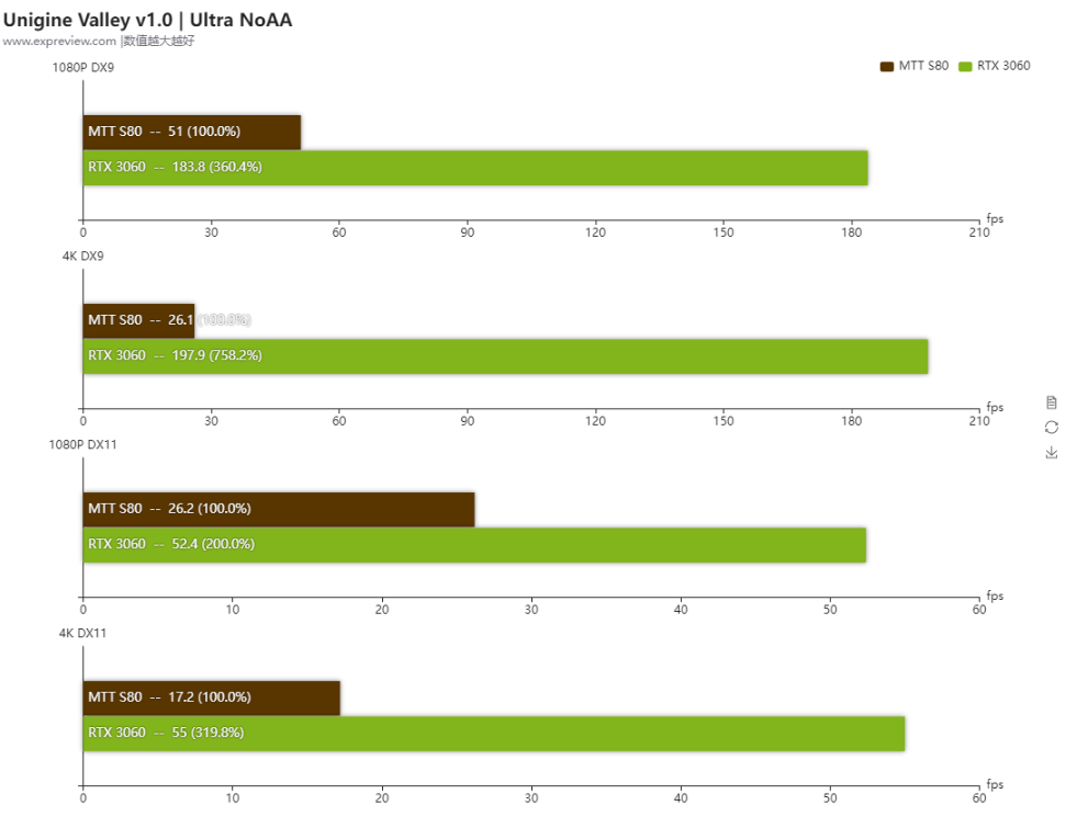 Как и ожидалось, главным недостатком MTT S80 оказалось программное обеспечение. Видеокарта совместима с графическими API DirectX 9 и DirectX 11, однако ПО для неё всё ещё находится в разработке. Из-за этого официальная поддержка заявлена всего для 11 игр, а в общей сложности она способна запустить более 60 проектов. Правда, быстродействие оставляет желать лучшего.