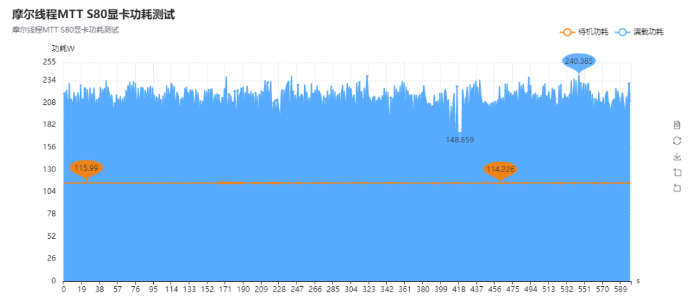 Основой видеокарты MTT S80 послужил графический чип MUSA-Chunxiao собственной разработки Moore Threads. Он работает на частоте 1,8 ГГц, оперирует 4096 потоковыми процессорами и 256-разрядной шиной памяти. Видеобуфер представлен 16 гигабайтами GDDR6 с пропускной способностью 448 Гбайт/с. Вычислительная мощность устройства в операциях FP32 достигает 14,4 Тфлопс.