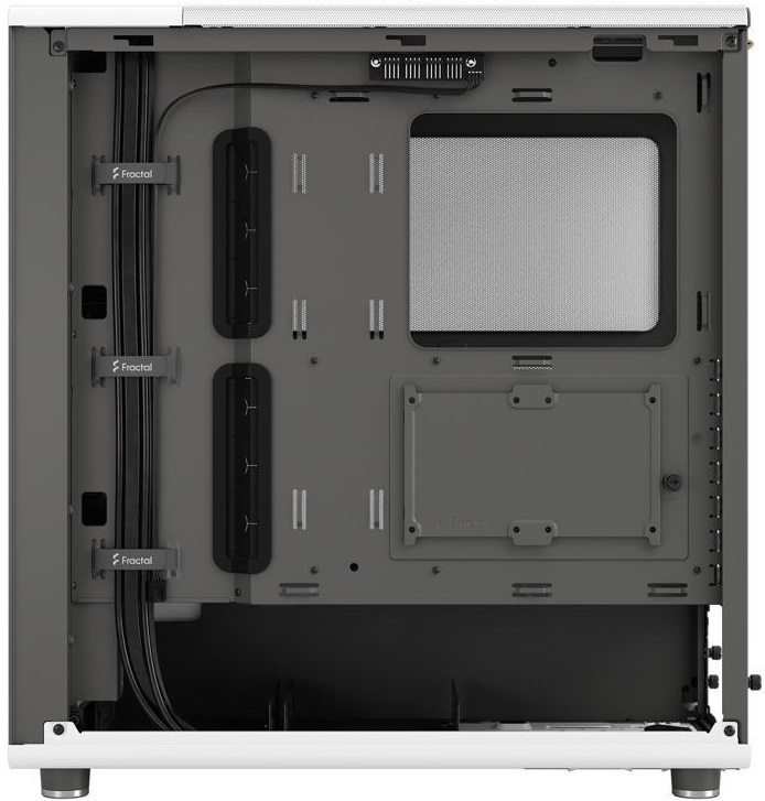 Боковая панель Fractal Design North может быть выполнена из мелкоячеистой сетки или закалённого стекла. Есть возможность установки до восьми 120-мм или до шести 140-мм вентиляторов, а также радиаторов СЖО типоразмера 120, 240 и 360 мм. На фронтальной панели доступны два порта USB 3.2 Type-A, один Type-C и пара 3,5-мм аудиоразъёмов. В комплект поставки входят два вентилятора Aspect 14 PWM.
