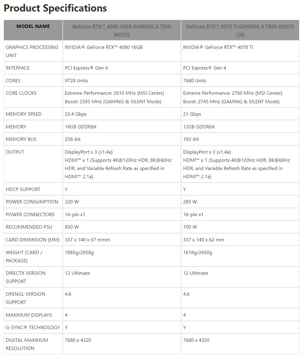 В продаже видеокарты MSI GeForce RTX 4080 Gaming Trio White и RTX 4070 Ti Gaming Trio White появятся до конца этого месяца. Рекомендованные цены будут объявлены позже.