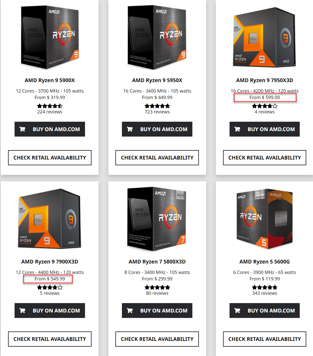 Накануне ассортимент чипов для платформы AMD AM5 пополнился моделью Ryzen 7 7800X3D — пожалуй, лучшим процессором для геймеров. Параллельно в Advanced Micro Devices приняли решение снизить цены на другие CPU Raphael, включая выпущенные недавно Ryzen 9 7900X3D и Ryzen 9 7950X3D, в собственном онлайн-магазине. Эти модели тоже оснащены дополнительными 64 МБ кэш-памяти L3 и поступили в продажу в конце февраля.