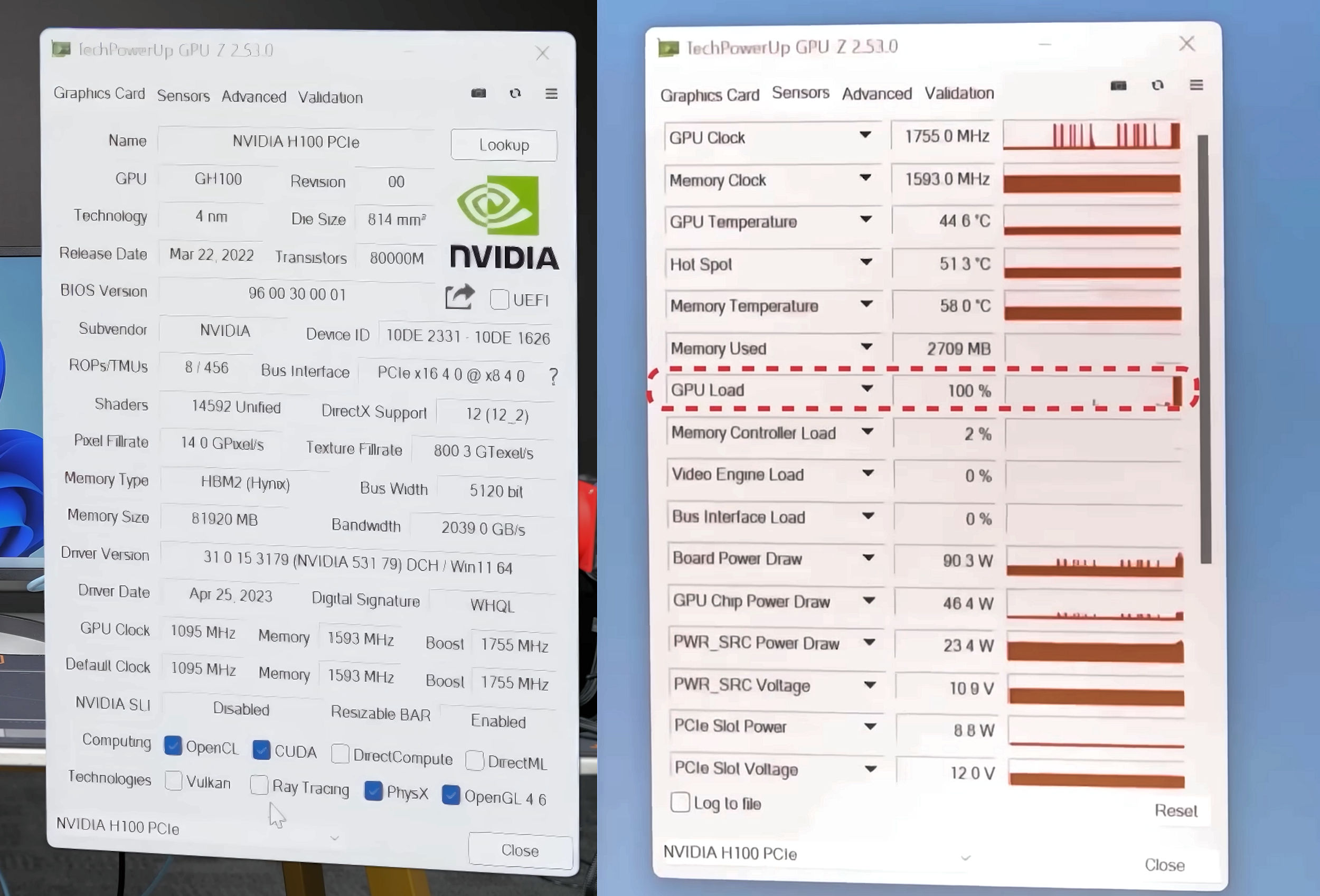 Чтобы использовать Nvidia Hopper H100 для запуска игр, энтузиасту пришлось модифицировать драйвер, а также использовать для вывода изображения отдельную видеокарту. К сожалению, ускоритель не удалось заставить работать при TDP выше 100 Вт, что сказалось на его производительности. В 3DMark TimeSpy он показал быстродействие уровня встроенной графики AMD Radeon 680M, а частота кадров в Red Dead Redemption 2 составила всего 7-8 к/с в разрешении 2560х1600 пикселей.