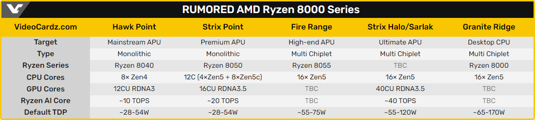 В планах AMD также значится релиз семейства процессоров Fire Range. Это преемники актуальных Ryzen 7045 (Dragon Range). По техническим характеристикам они будут близки к настольным чипам Ryzen 8000, т.е. обойдутся без мощной встроенной графики.