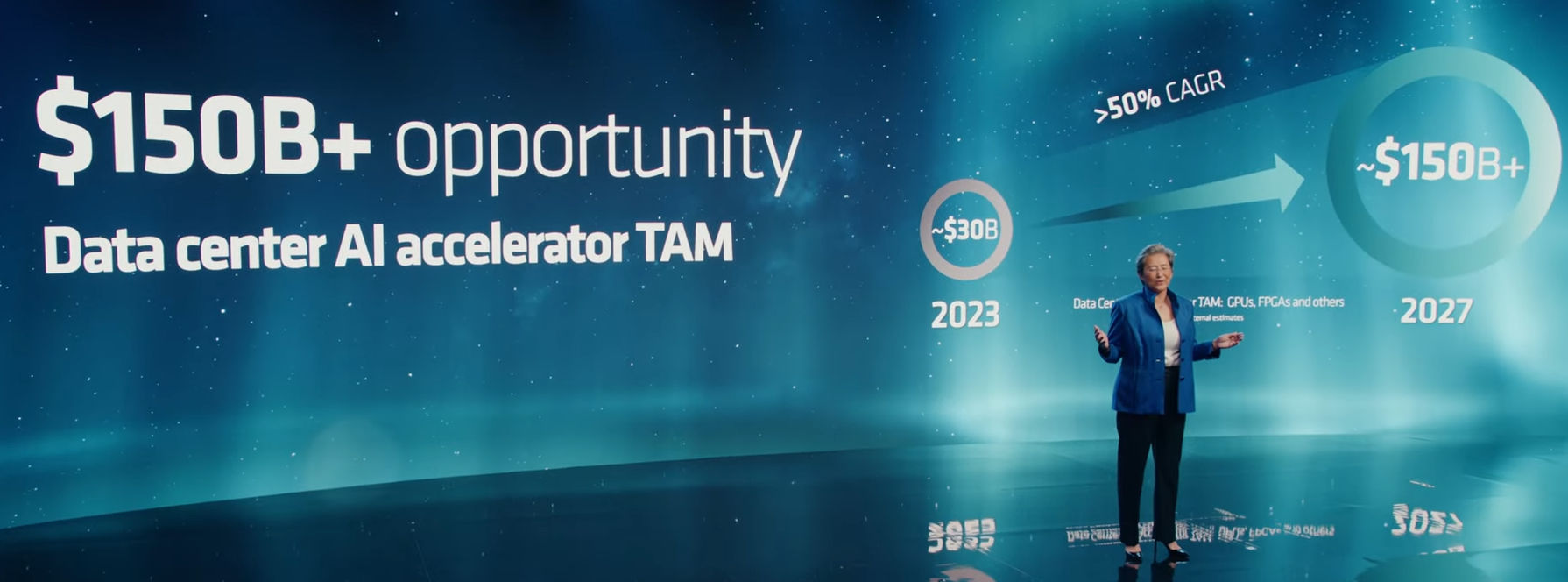 AMD также напомнила о релизе ускорителя Instinct MI300 в последнем квартале этого года. Равно как и Nvidia, «красные» видят огромные возможности на рынке вычислений, связанных с искусственным интеллектом. На фоне экспортных ограничений США компания рассматривает возможность выпуска отдельных устройств для китайского рынка, которые будет соответствовать требованиям Соединённых Штатов. К слову, Nvidia начала выпускать такие ускорители ещё в прошлом году.