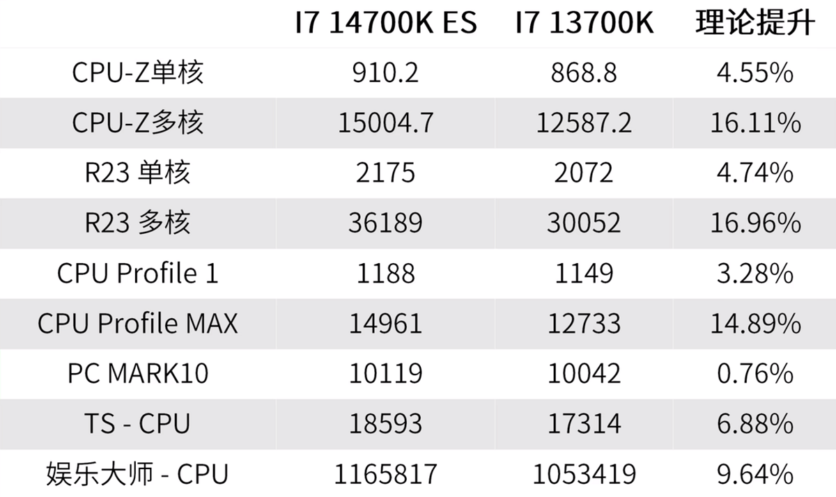 Основой бенч-стенда выступила материнская плата MSI PRO Z690-A DDR4, использовалась готовая система жидкостного охлаждения с 360-мм радиатором и 16 Гбайт памяти DDR4-4000. С результатами тестов можно ознакомиться в таблице ниже. Наибольший прирост производительности наблюдается в многопоточном Cinebench R23, где инженерная версия Core i7-14700K оказалась на 17% быстрее Core i7-13700K
