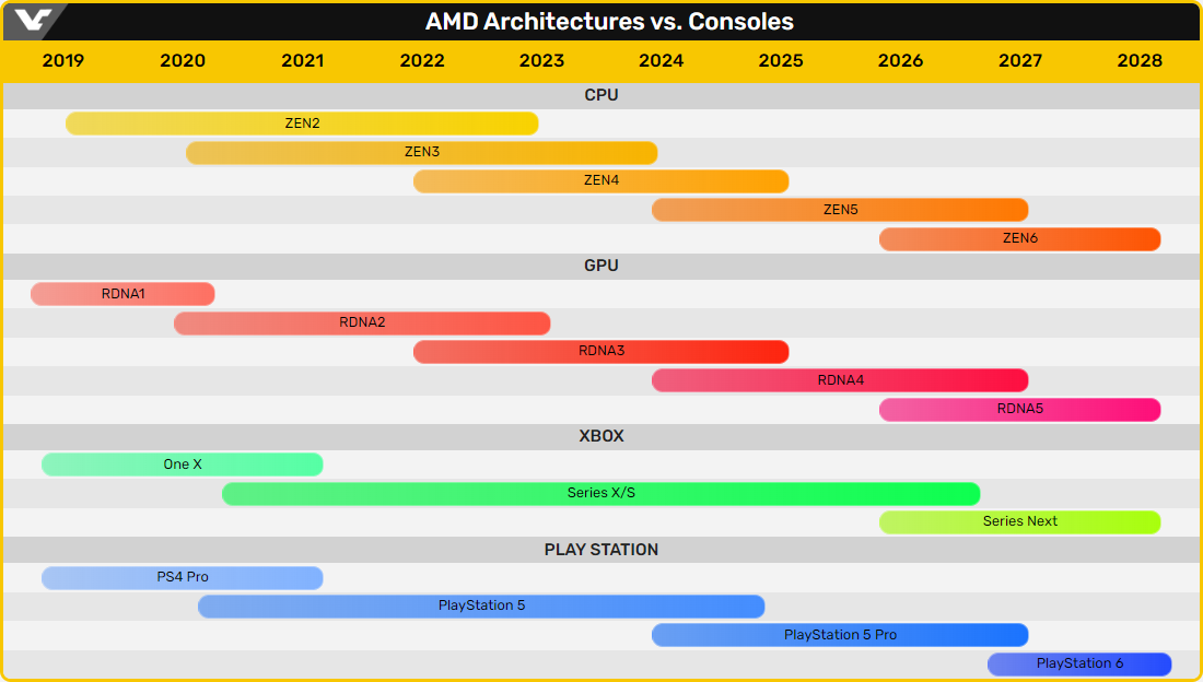 Что касается аппаратного обеспечения nextgen-версии Xbox, то в нём будет использоваться графическое ядро AMD RDNA 5-го поколения. Для CPU-блока Microsoft ранее рассматривала архитектуры Zen 6 или вовсе переход на ARM64. Однако на фоне переноса, вероятнее всего, будет вынуждена использовать Zen 5. Также в новинке будет предусмотрен отдельный блок для ускорения операций машинного обучения.
