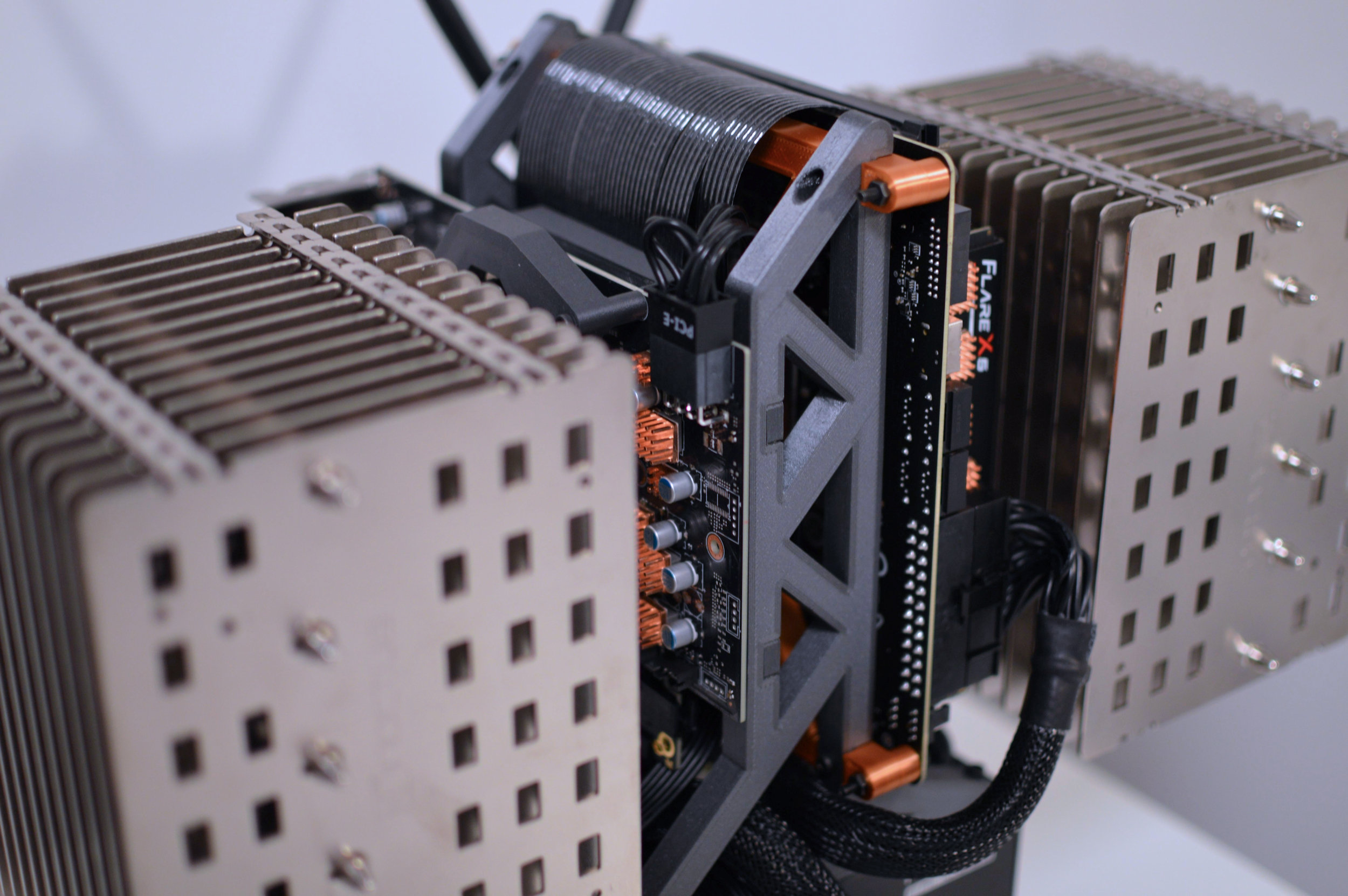 Для установки Noctua NH-P1 на видеокарту энтузиаст модифицировал штатное крепление, изготовив на 3D-принтере дополнительные элементы (соответствующие модели для печати выложены в открытый доступ). Уровень TDP пришлось уменьшить со штатных 115 Вт до 90 Вт. В таком режиме графический процессор видеокарты под нагрузкой работал при температуре около 80-85°C.