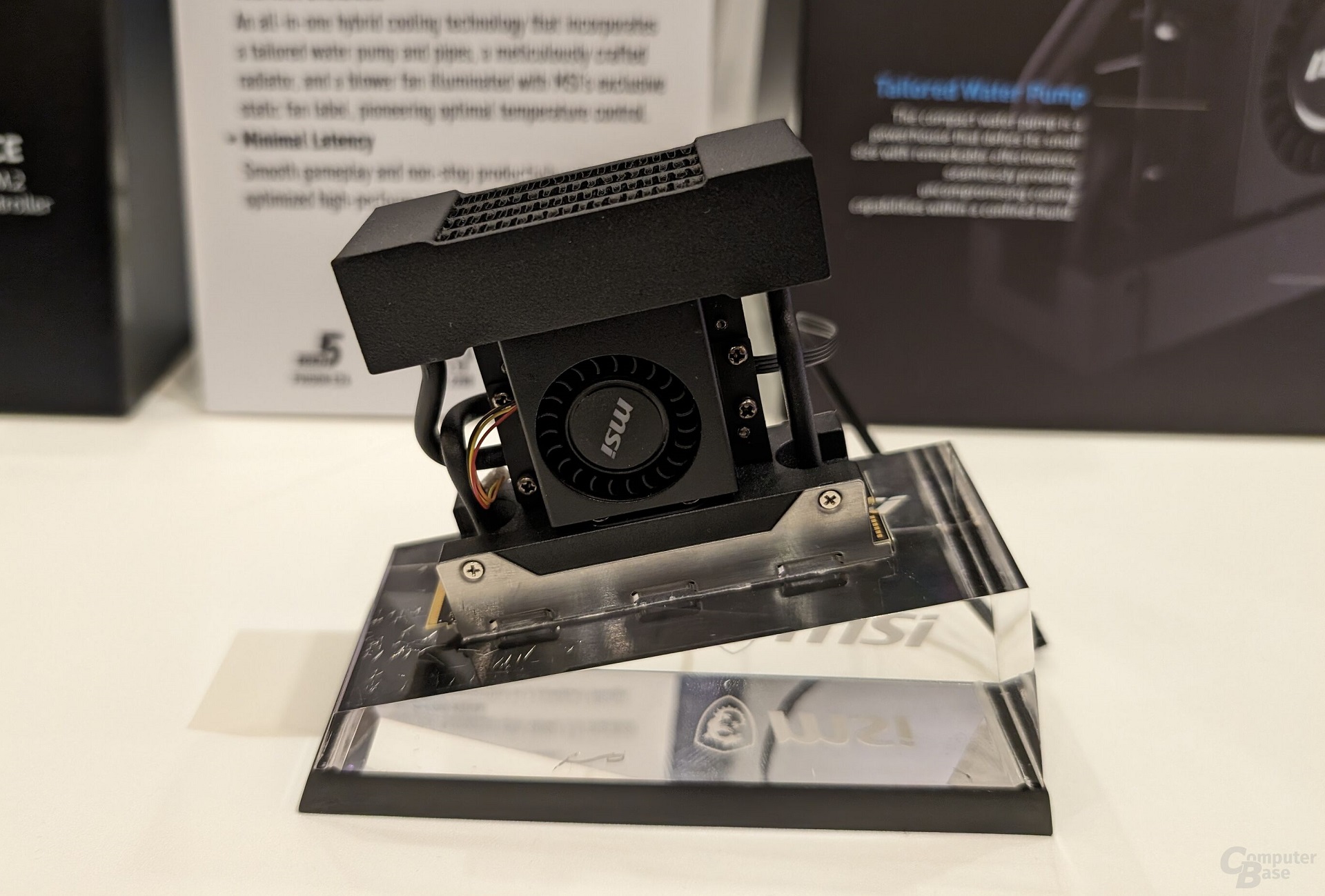 В модификации Frozr Liquid накопитель MSI Spatium M580 оснащается системой жидкостного охлаждения, причём вендор постарался сделать СЖО наиболее компактной. MSI также представила его версию Frozr+ с активным воздушным кулером. Добавим, что в случае актуального Spatium M570 Pro компания ограничилась массивным радиатором с тепловыми трубками.