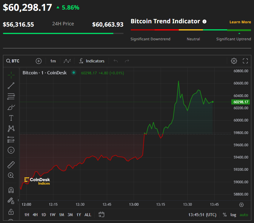 В последние недели курс Bitcoin, самой популярной в мире криптовалюты, демонстрирует стремительный рост. Ещё в январе он опускался ниже $40 тысяч, но пару недель назад ему удалось преодолеть $50-тысячную отметку, а в настоящее время за одну монету BTC придётся выложить более 60 тысяч долларов. Веб-ресурс Coindesk зафиксировал 24-часовой максимум $60 663. Между тем, общая капитализация цифровой валюты находится у отметки 1,2 триллиона долларов.