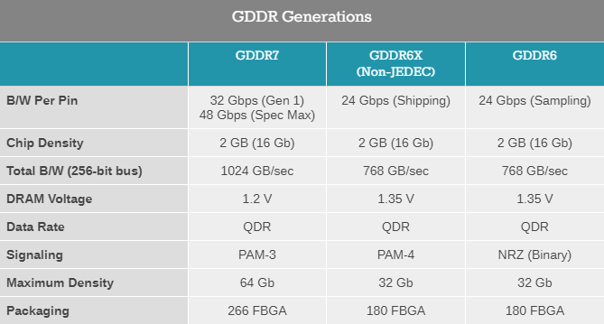 Следом за официальным утверждением стандарта графической памяти GDDR7 в Сети появились дополнительные подробности об этом виде ОЗУ. В частности, первые игровые видеокарты AMD и Nvidia, оборудованные буфером GDDR7, будут использовать микросхемы объёмом 16 Гбит (2 ГБ). Такой же плотностью обладают актуальные чипы GDDR6 и GDDR6X.