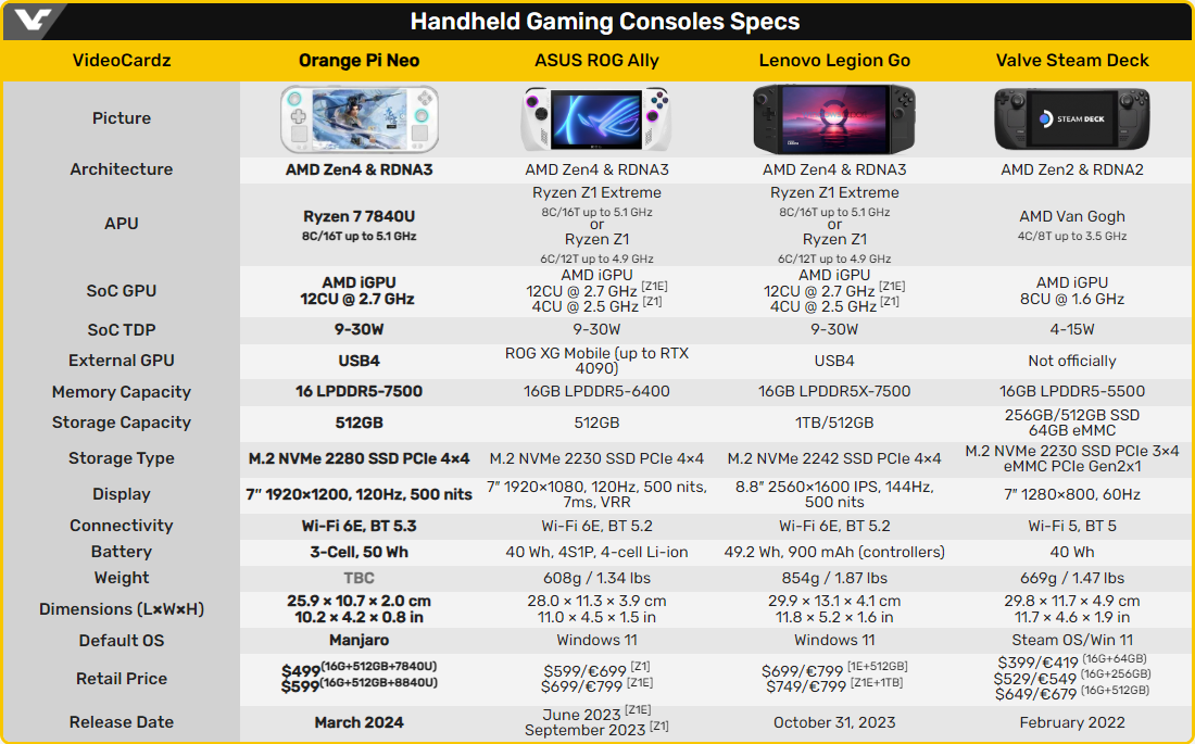 Бренд Orange Pi, известный в первую очередь благодаря одноплатным компьютерам, анонсировал поступление в продажу портативной игровой системы Orange Pi Neo. Устройство базируется на платформе AMD и будет доступно в версиях с процессорами Ryzen 7 7840U и Ryzen 7 8840U. Интересной особенностью новинки стала штатная операционная система — работает она под управлением Manjaro Linux.
