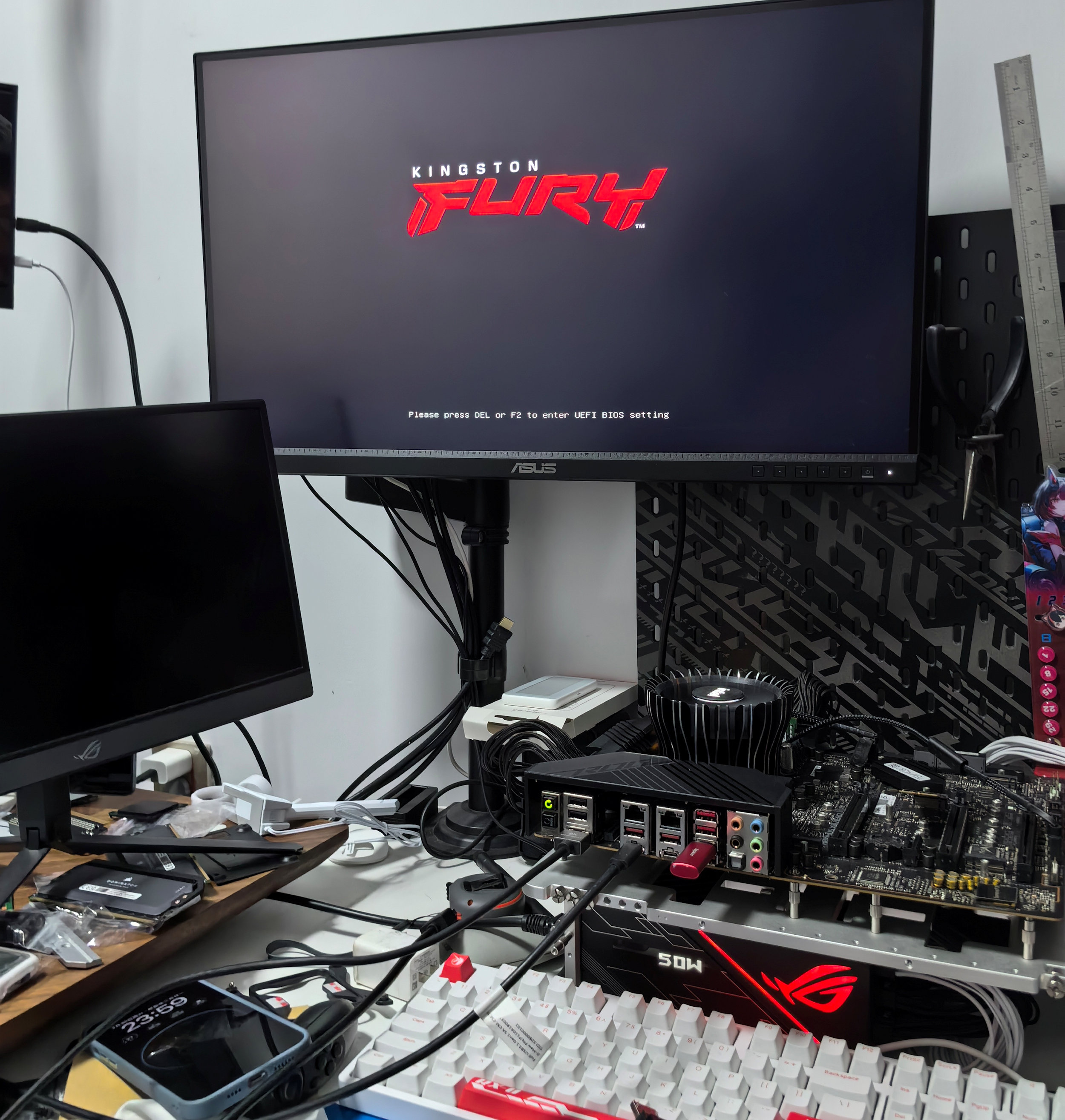 Как предполагают зарубежные коллеги, эта системная плата могла использоваться для тестирования высокоскоростных модулей DDR4 формата SO-DIMM. Вероятнее всего, она была изготовлена ASUS по заказу Kingston Technology. Подтверждением этой теории можно считать логотип Kingston FURY, который отображается при запуске системы.