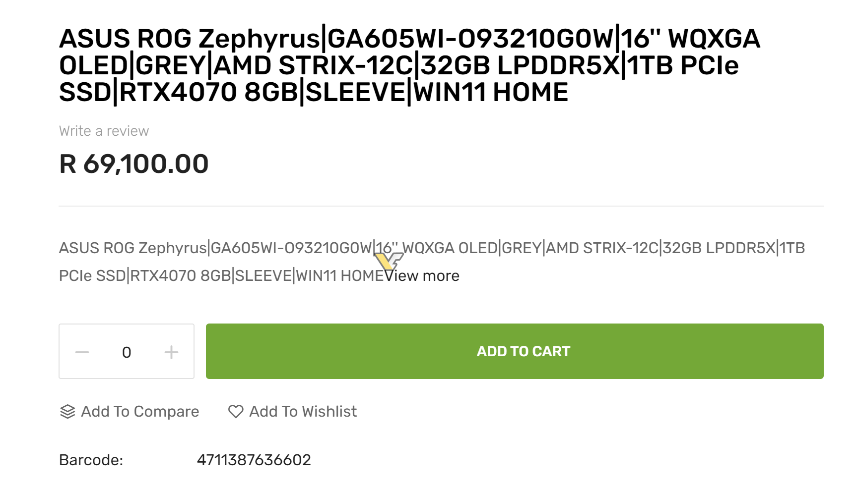 Речь идёт об игровом ноутбуке ASUS ROG Zephyrus G16 (GA605WI-O93210G0W). Это 16-дюймовый лэптоп с неназванным 12-ядерным процессором AMD Strix Point. Его оснащение также включает 32 ГБ оперативной памяти LPDDR5X, терабайтный NVMe-накопитель и видеоадаптер GeForce RTX 4070 Laptop. Новинка была оценена примерно в 3700 долларов США.