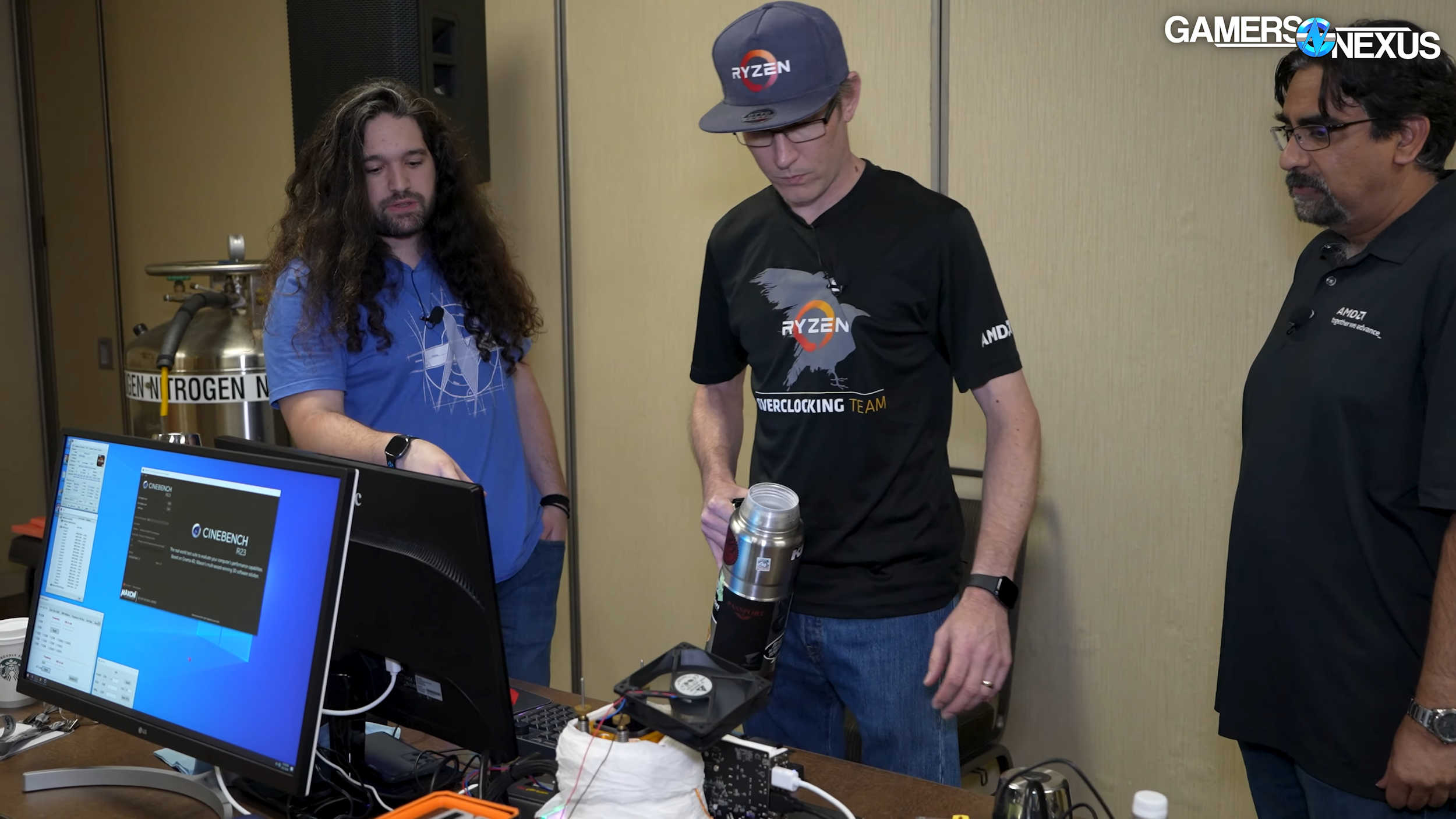 В рамках подготовки к релизу процессоров Ryzen 9000 (Granite Ridge) компания AMD устроила бенч-сессию с участием флагманского Ryzen 9 9950X. Команда оверклокеров AMD XOC продемонстрировала возможности новинки с использованием экстремального охлаждения. Лично наблюдать процесс разгона посчастливилось редакции Gamers Nexus.