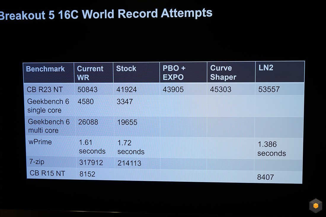 Основой бенч-стенда выступила материнская плата ASUS ROG Crosshair X670E Gene. С нашим обзором этой модели можно ознакомиться по ссылке. За охлаждение AMD Ryzen 9 9950X отвечал испаритель жидкого азота, а в ходе эксперимента этот процессор удалось «раскочегарить» до 6,6-6,7 ГГц. Напоминаем, что в штатном режиме он функционирует на частоте до 5,7 ГГц.