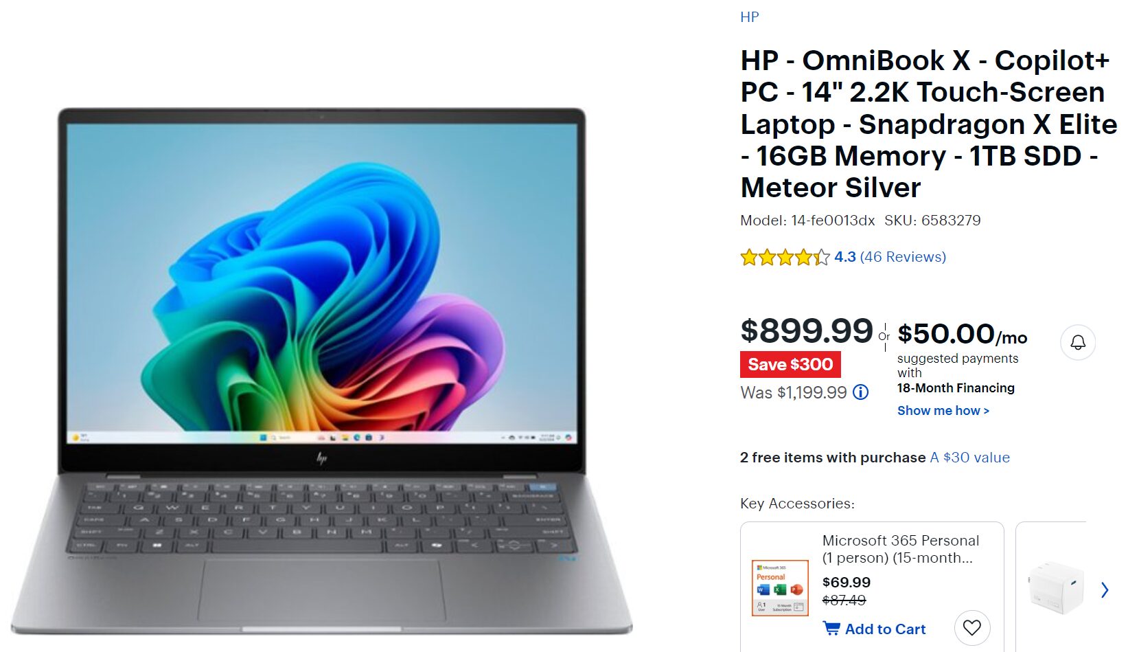 Между тем, за рубежом уже отмечается снижение цен на ноутбуки с платформой Qualcomm Snapdragon X. К примеру, лэптоп HP OmniBook X в североамериканских магазинах сейчас можно найти по цене от $900, хотя на момент старта продаж он стоил минимум 1200 долларов. Релиз процессоров AMD Ryzen AI 300 (Strix Point) и Intel Core Ultra 200V (Lunar Lake), вероятно, только ускорит падение цен.