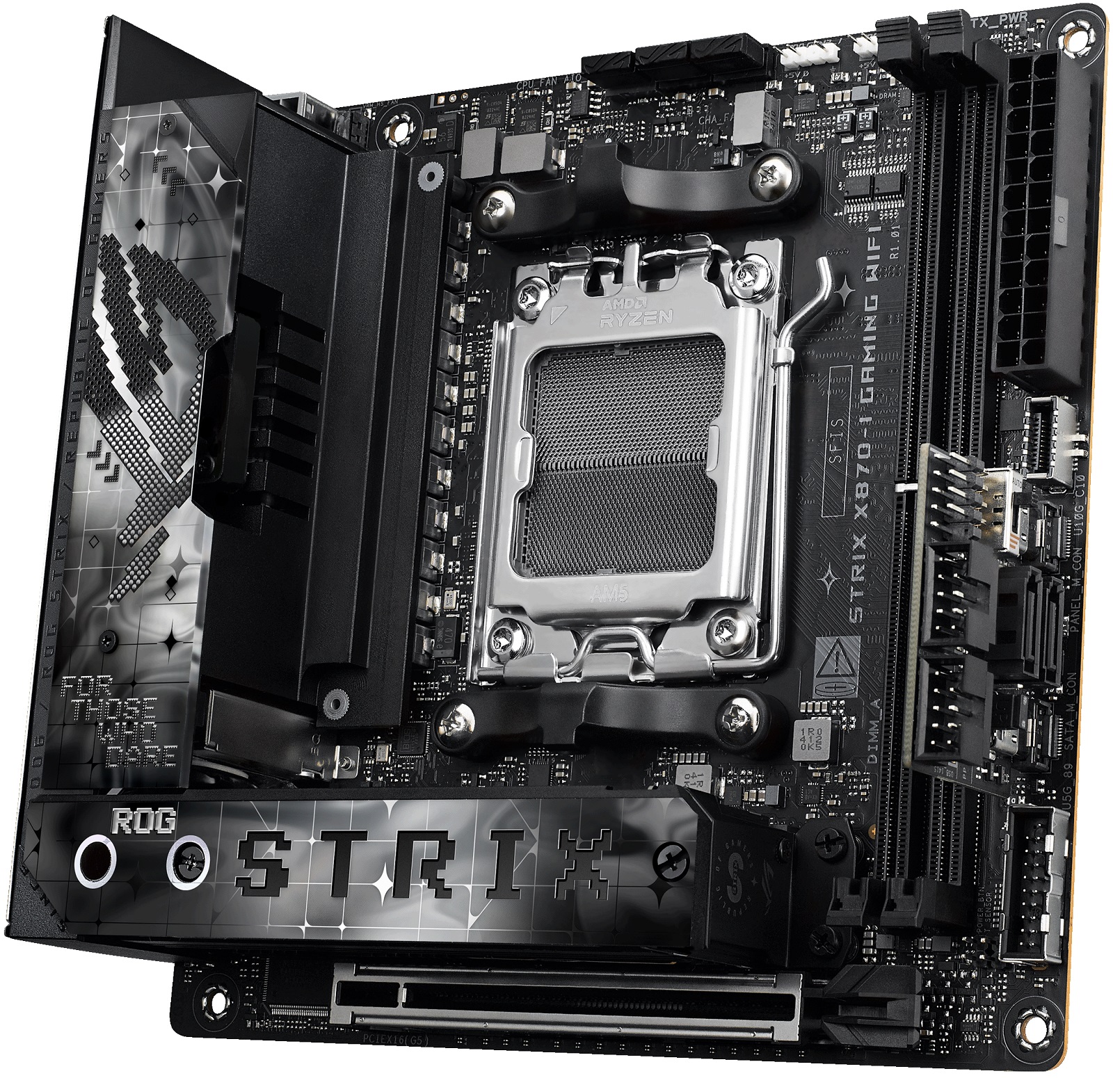 Модель ROG Strix X870-I Gaming WiFi выполнена в формате Mini-ITX и подойдёт для компьютеров класса SFF-Ready. Как и другие платы X870, она поддерживает PCIe 5.0 для видеокарты и твердотельного накопителя, а отметка «WiFi» указывает на наличие беспроводного модуля Wi-Fi 7. Среди её особенностей ASUS отмечает дочернюю плату ROG FPS, которая обеспечивает лёгкий доступ портам SATA 6 Гбит/с и коннекторам передней панели корпуса, а также внешний блок ROG Strix Hive II, где среди прочего размешена аудиоподсистема с ЦАПом ESS Sabre 9260Q.